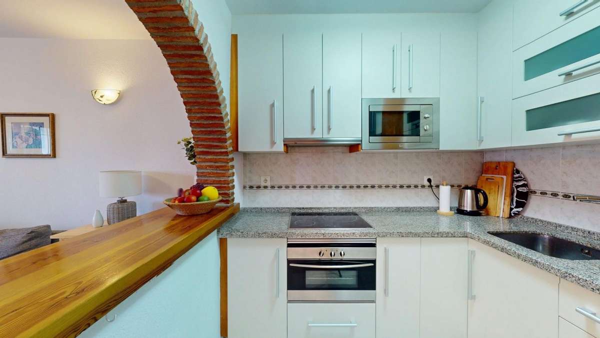 It has 2 spacious bedrooms, a complete bathroom, and an updated kitchen that connects to the living room through a serving hatch, ideal to integrate it and create an open and modern space. All west facing, which guarantees natural light in the afternoon and sunsets on the terrace.