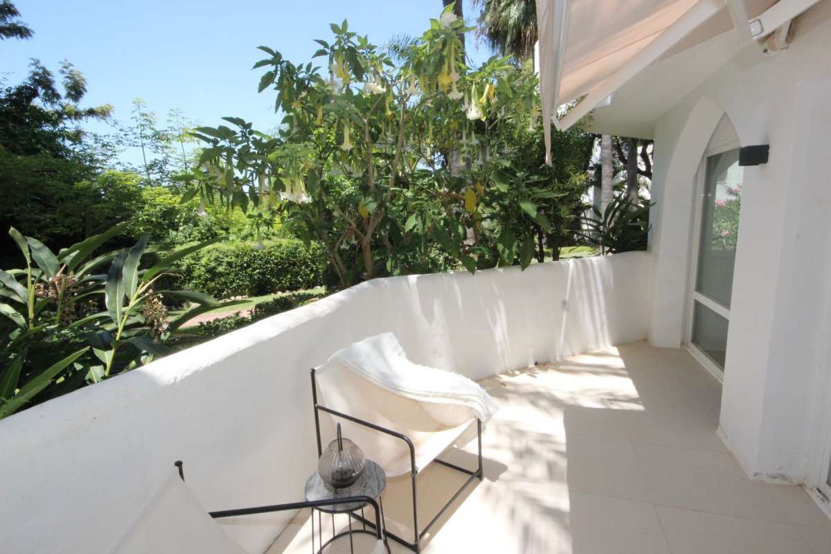 Discover this spacious ground floor apartment, a true gem in Marbella East, that perfectly combines romantic Andalusian-style architecture with a modern design and renovation.