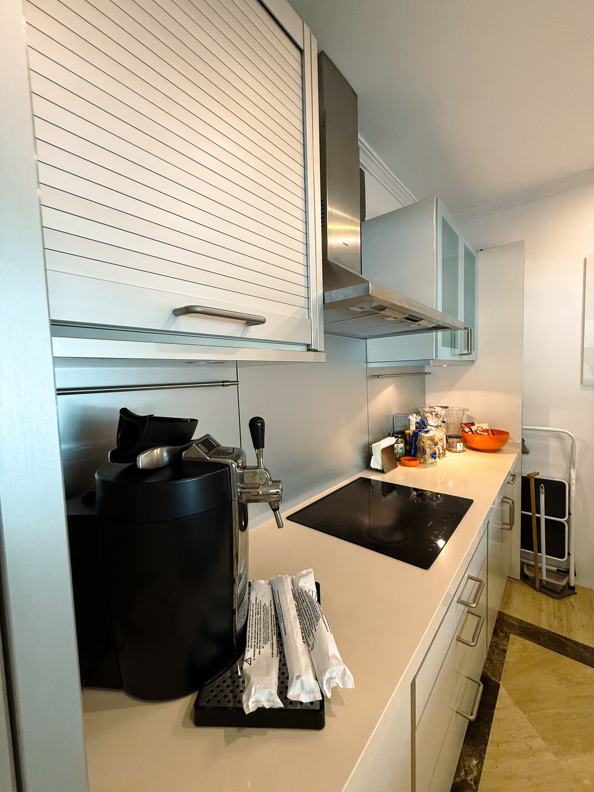 The complex offers exclusive amenities such as an indoor and outdoor pool, a modern gym, a spa with a sauna and hydrotherapy, a restaurant, a bar, and 24-hour security.