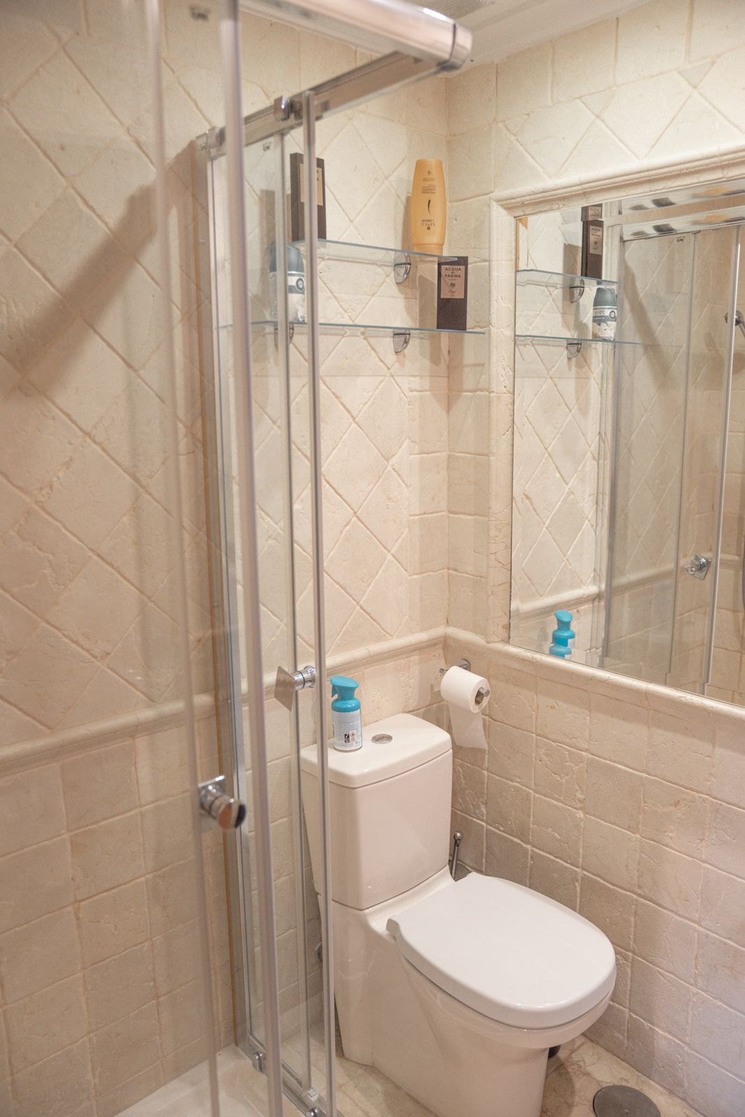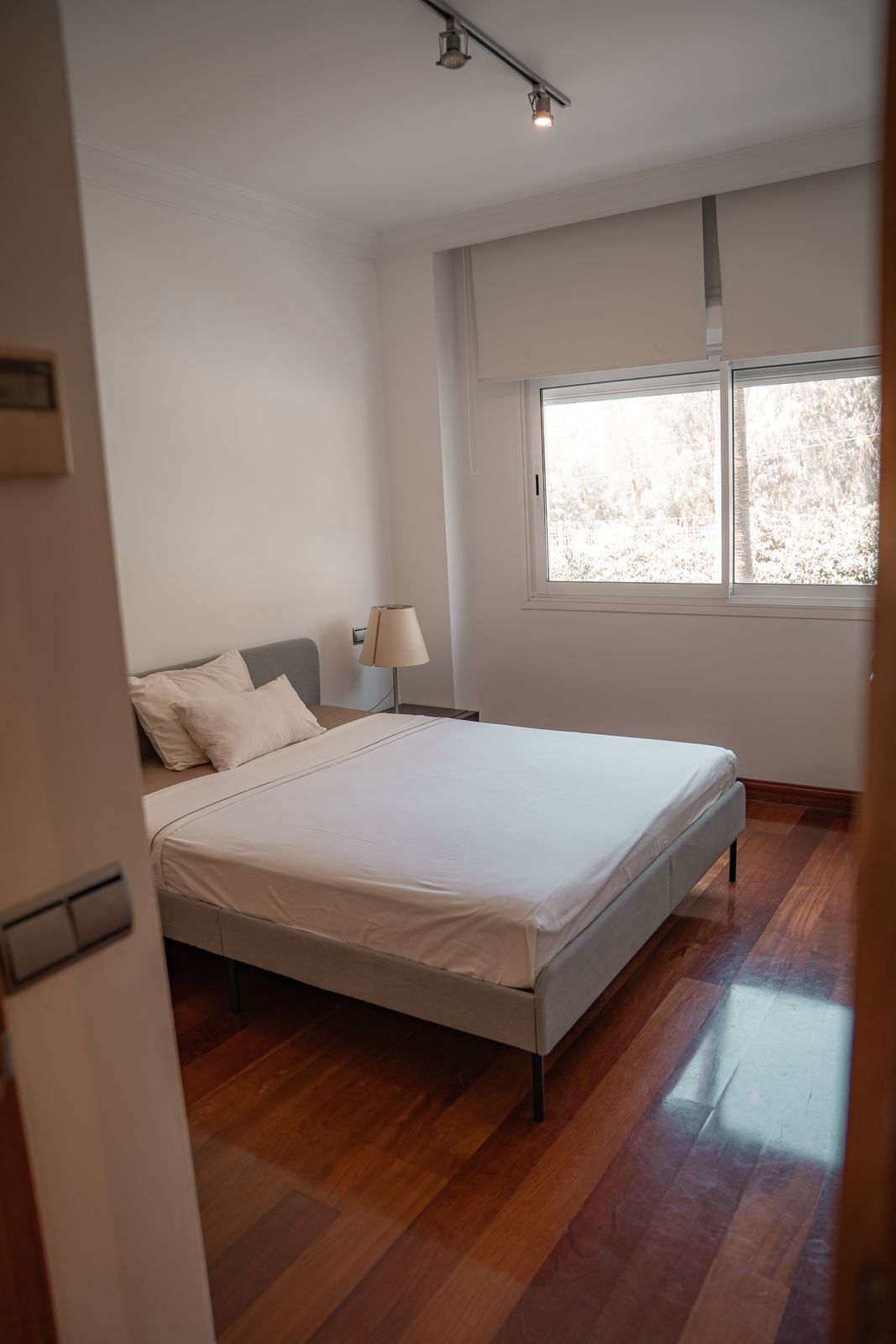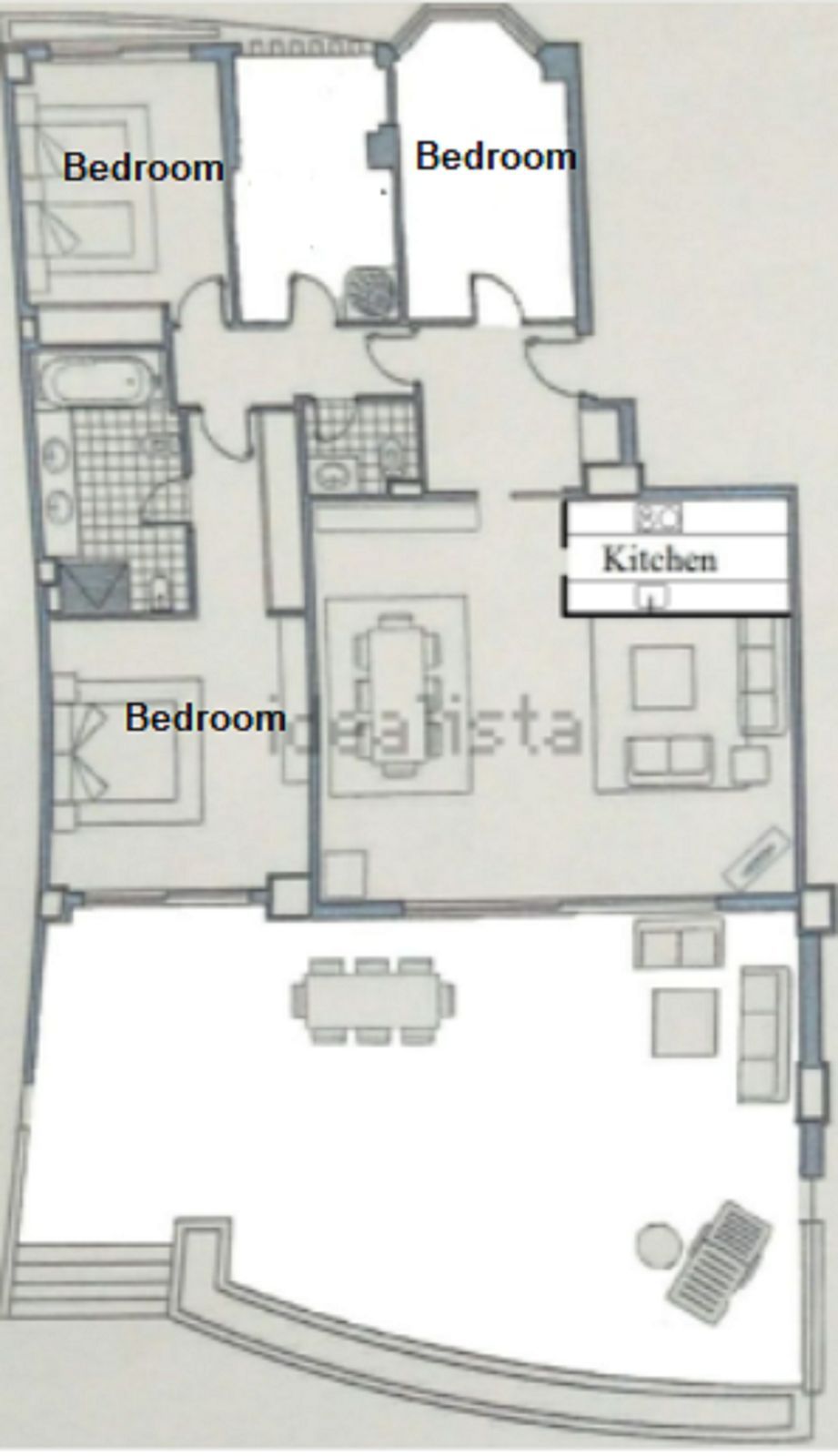 The property offers three bedrooms and three bathrooms. The master bedroom has an en-suite bathroom with a bathtub and shower and direct access to the terrace.