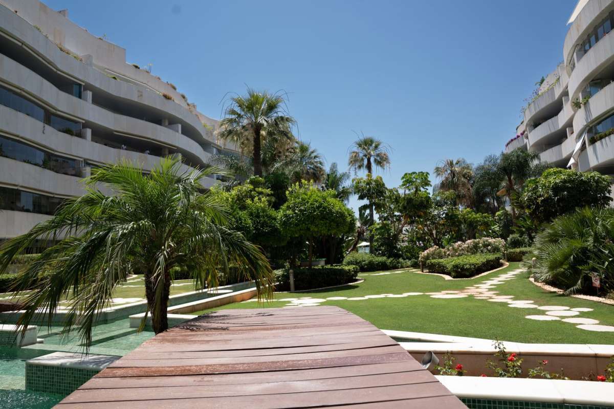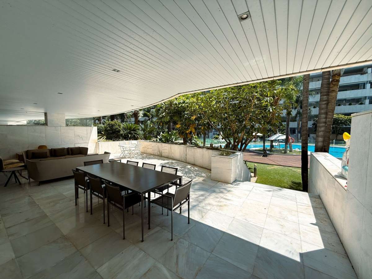 Elegant ground-floor apartment with 157 m² built, located in the prestigious Embrujo de Banús complex, just a 3-minute walk from the beach: Ocean Club, Mistral Beach, etc.