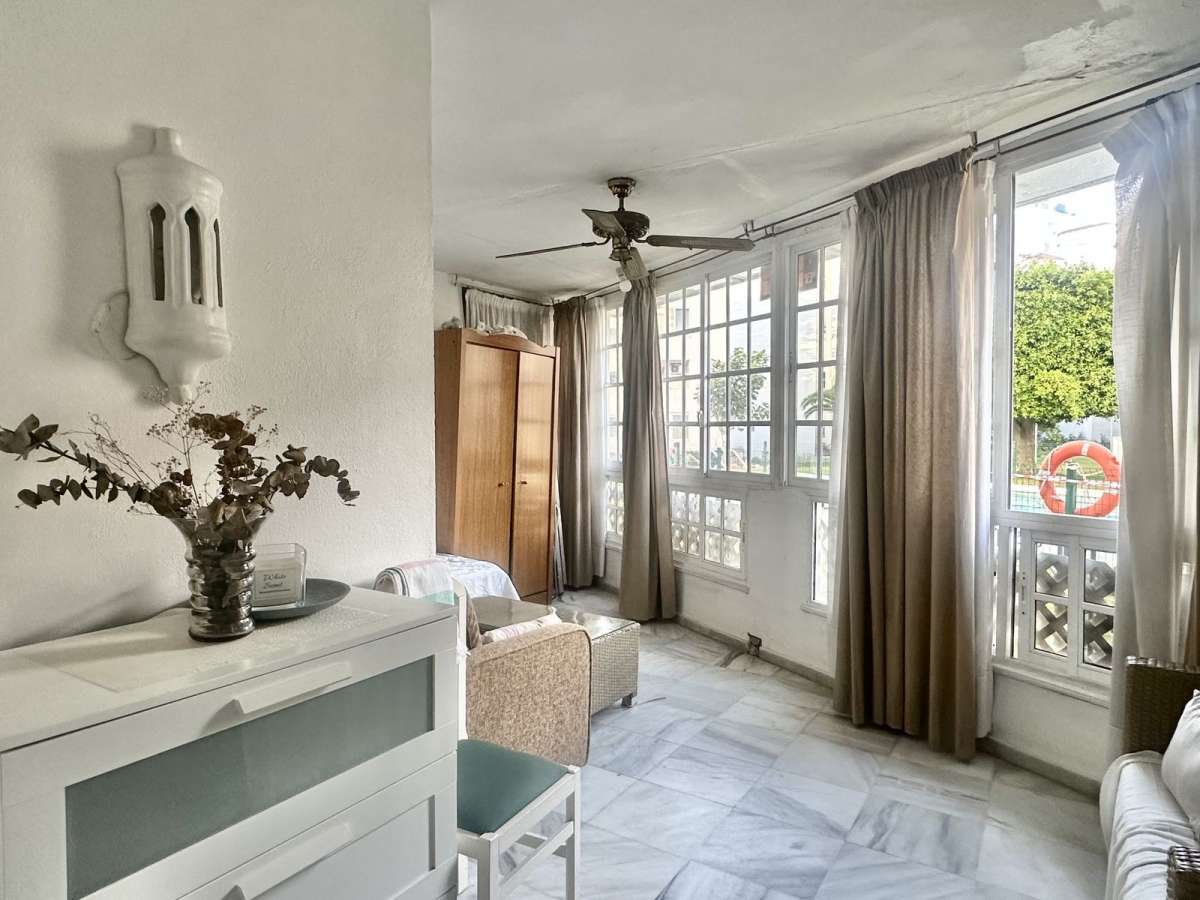 Fantastic opportunity in the sought-after Marbella del Mar complex, set directly on the beachfront and only 10 minutes’ walk to Marbella Old Town. This 1-bedroom, 1-bathroom ground floor apartment offers a spacious terrace with pool views and lateral sea views, ideal to reform and create your dream coastal residence or a profitable holiday rental.