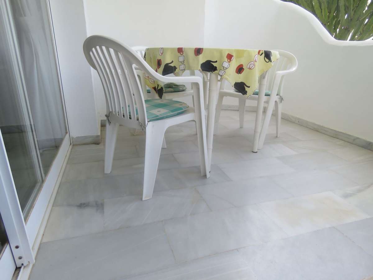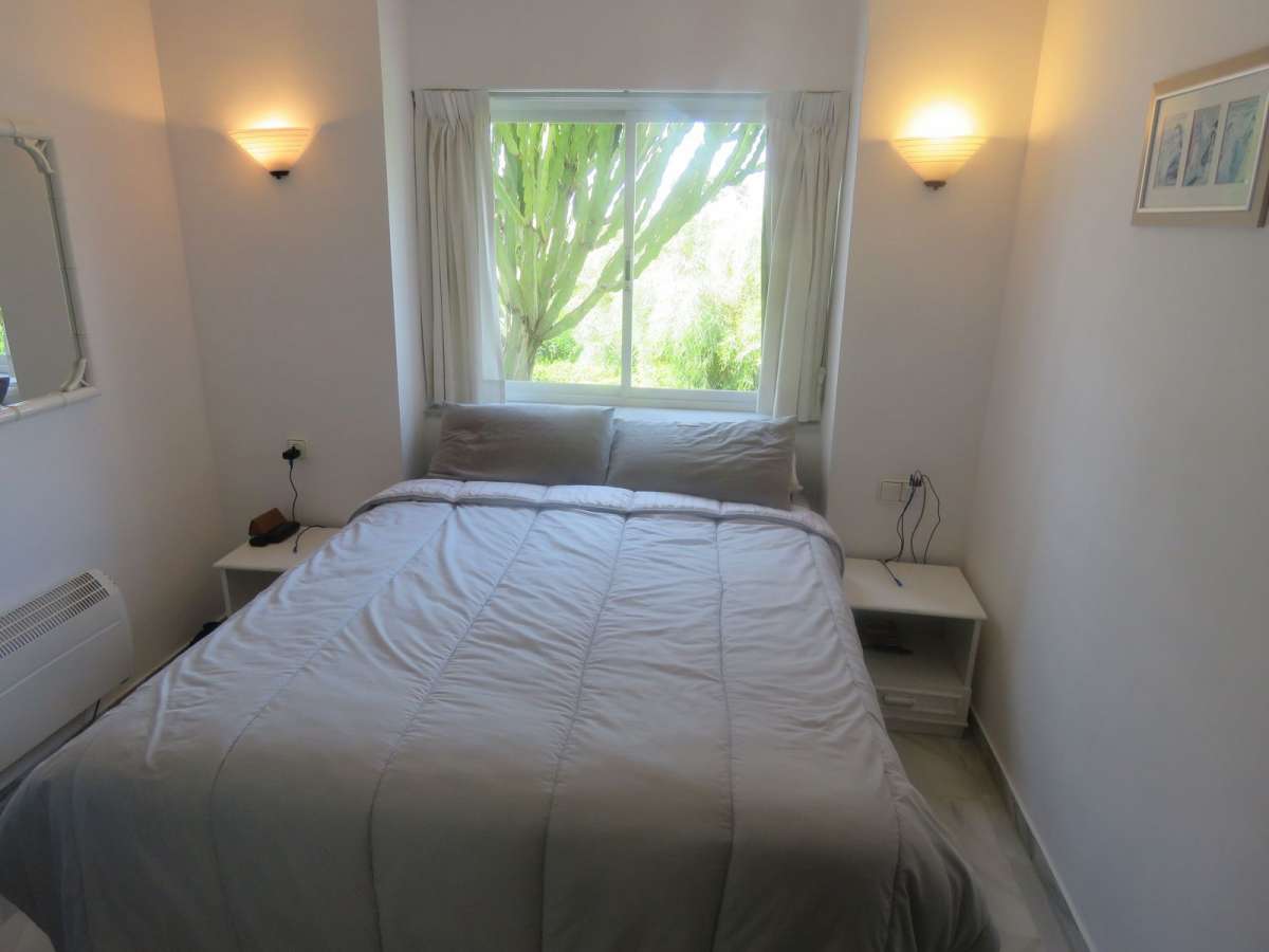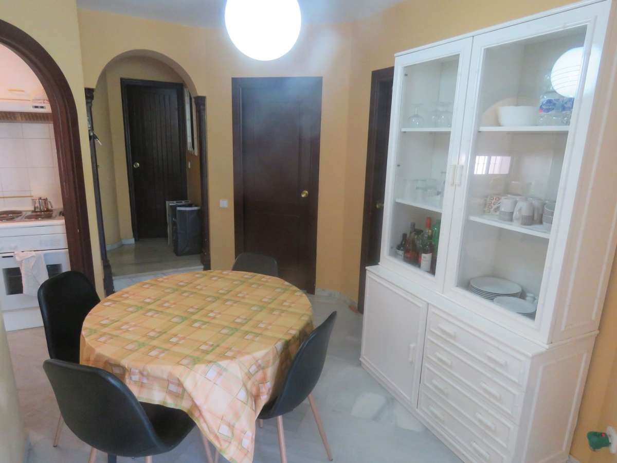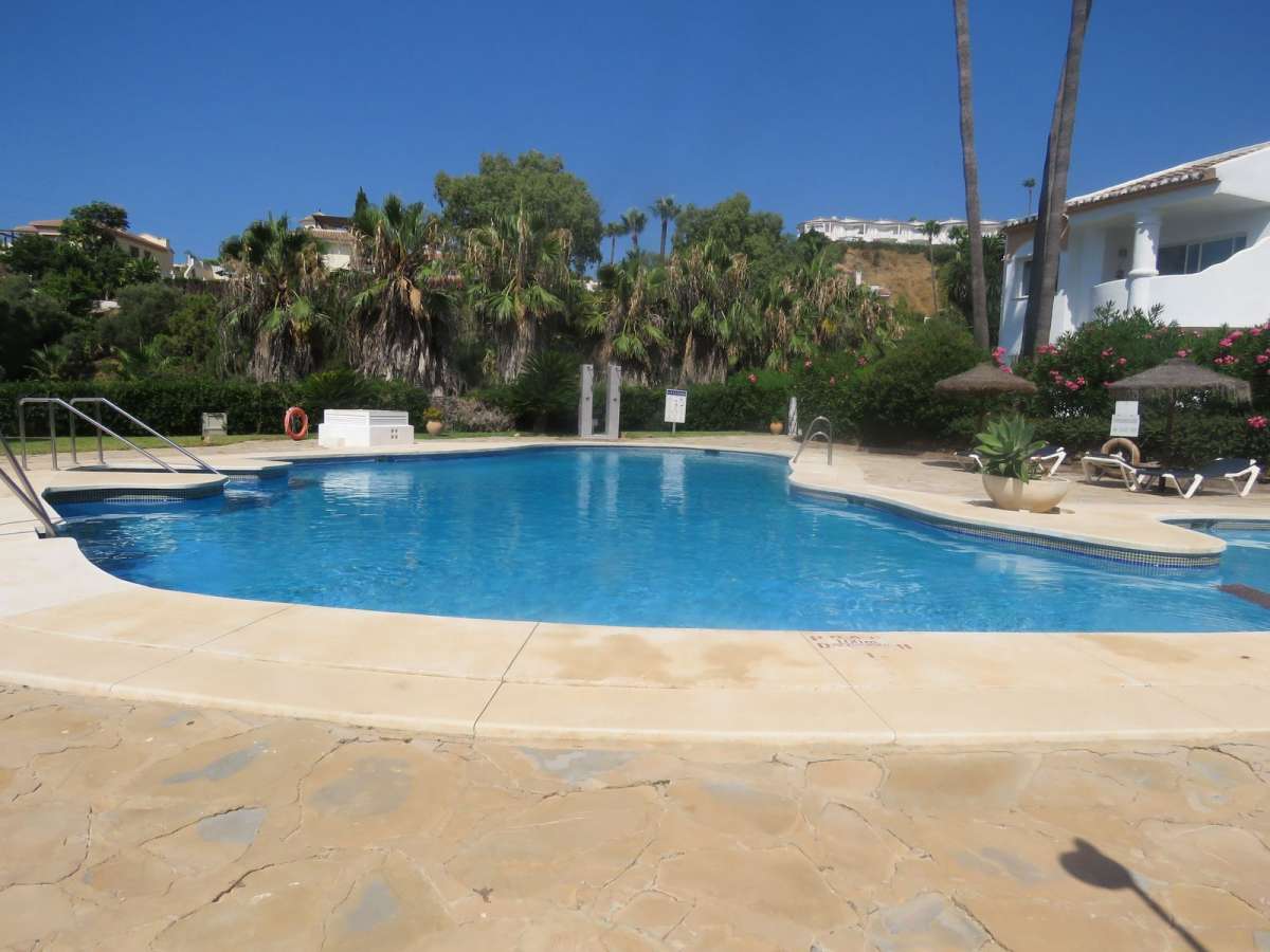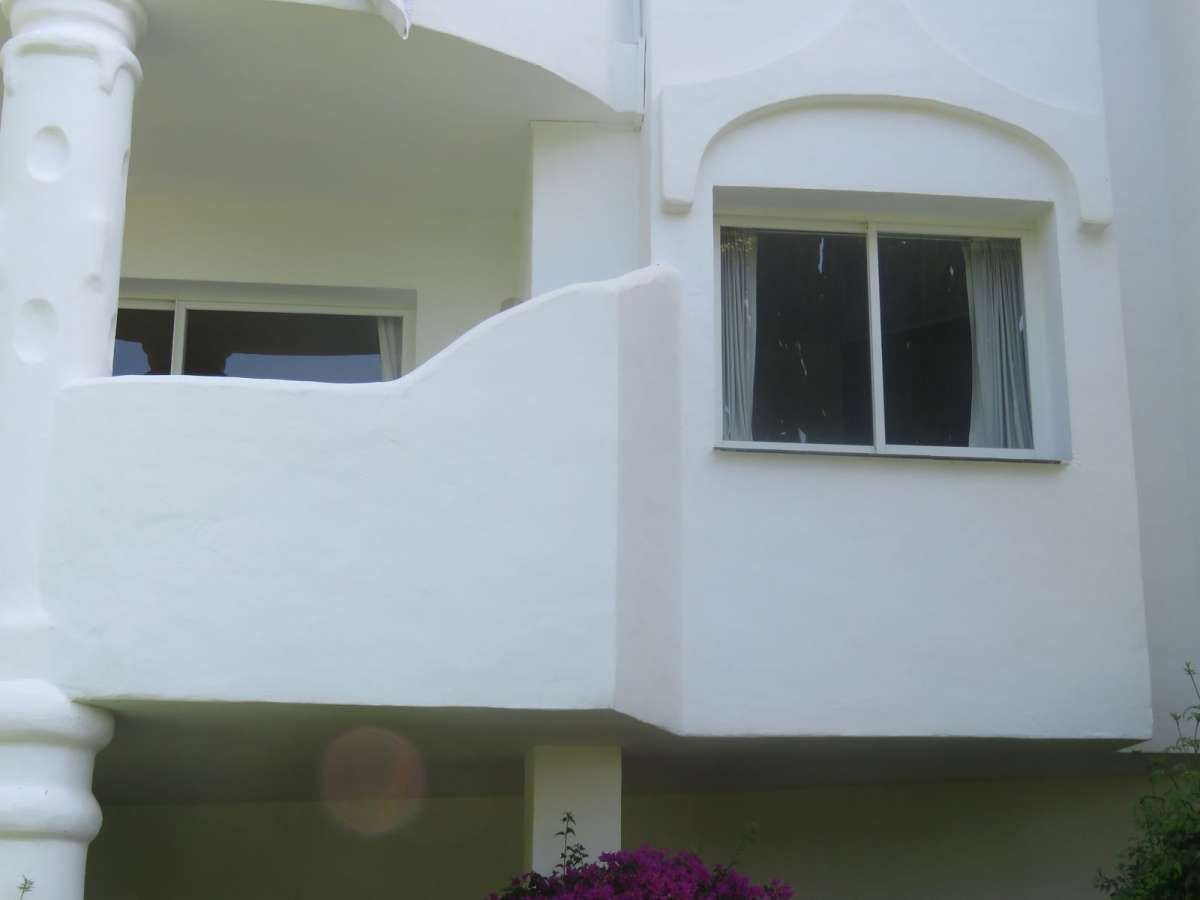 This cosy 2 bedroom, 2 bathroom apartment is located in a quiet and beautiful urbanization in Calahonda. This elevated ground floor looks out over a lovely green area and "Arroyo". There is small kitchen, dining area and sunny living room. The apartment need some updating but that is reflected in the price. Not much out there for this money anymore. The urbanization has a beautiful pool area.