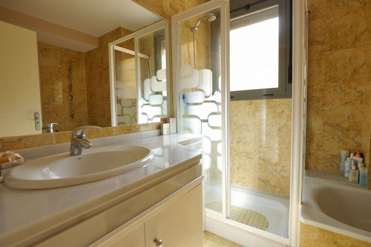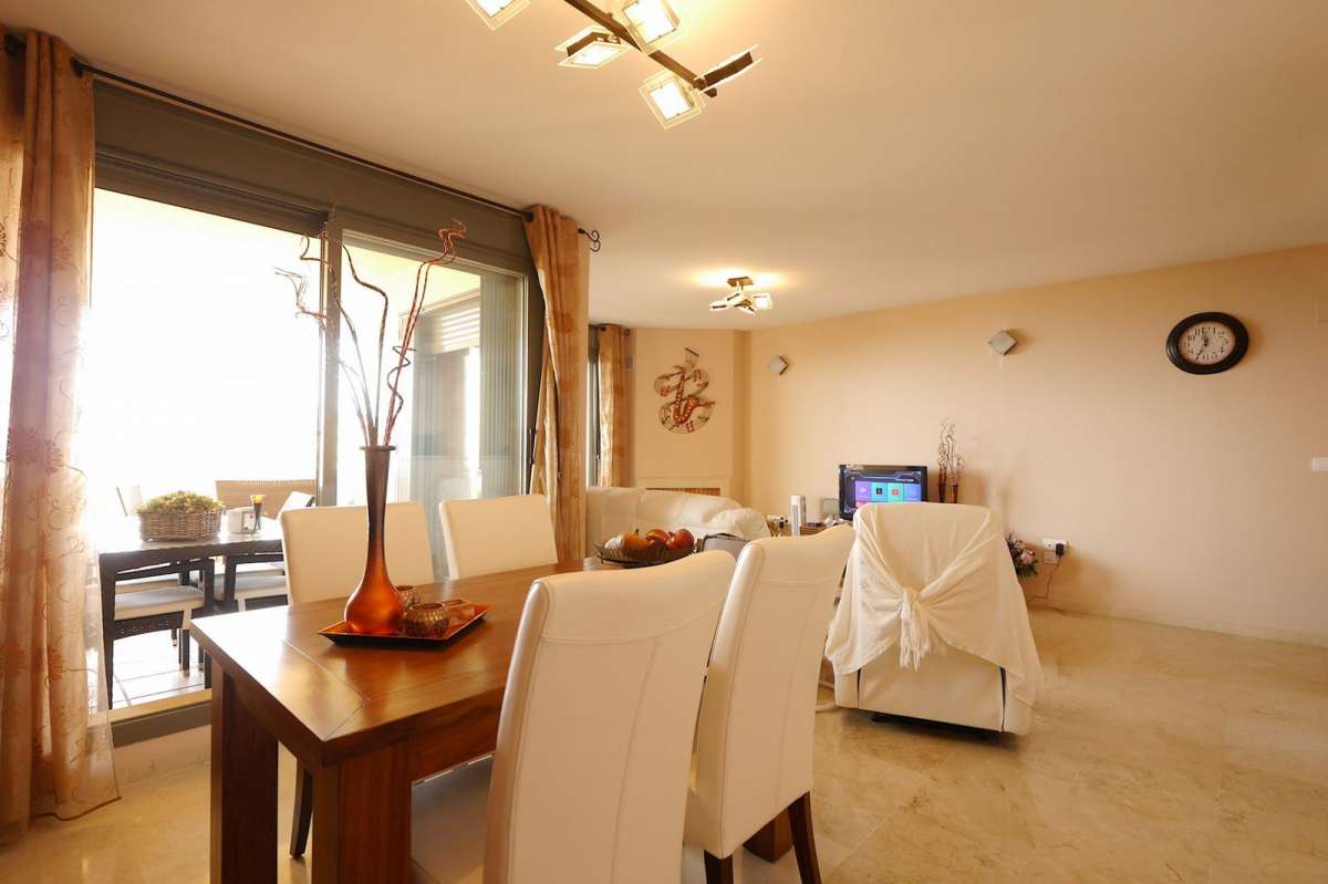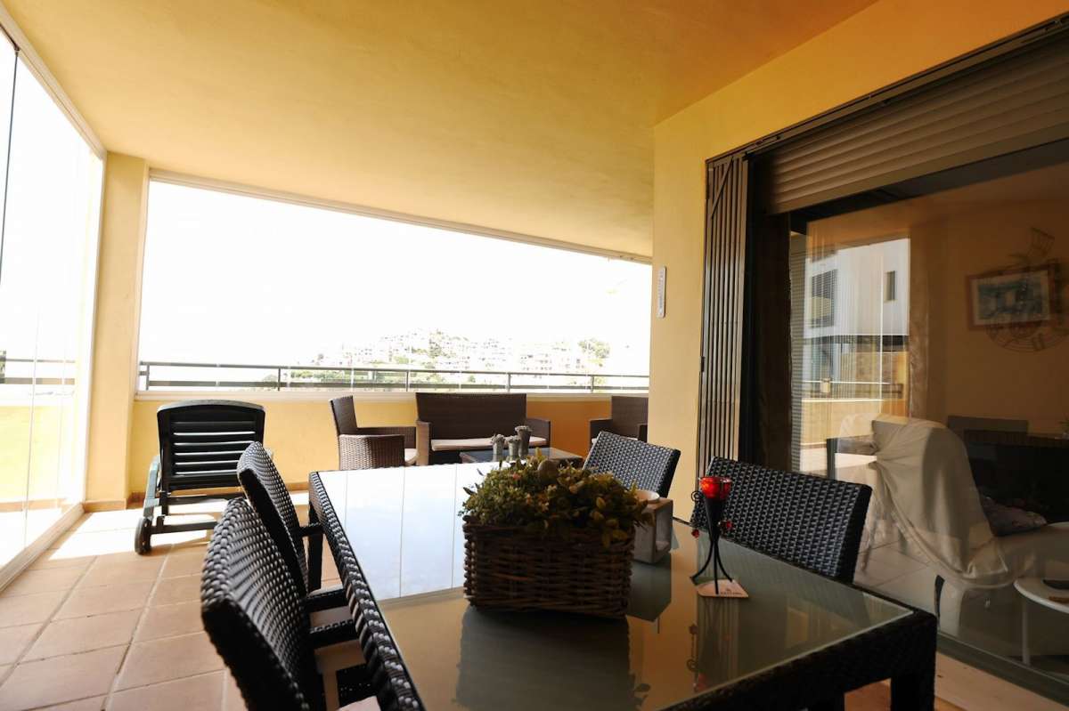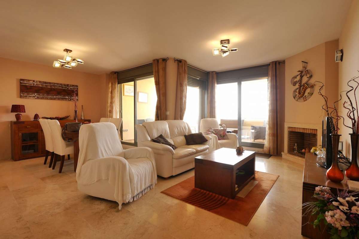 Elevated ground floor apartment (2 bed/2bath) in upper Calahonda. Open kitchen with a larger than usual washing room. The dining/living room with a fire place, gives access to a partly glassed in terrace with BBQ and a panoramic sea views. 2 bedrooms with one ensuite bathroom and another separate bathroom. The property comes with an underground parking space as well as a storage room. The building has a lift. The urbanisation has 3 swimming pools, the one closest to the apartment has salted water system. Bus stop 300 metres away (going to Myramar shopping center). 10 minutes walk to the restaurant Miel Y Nata and cocktail bar Millenium. We have keys so easy viewing.