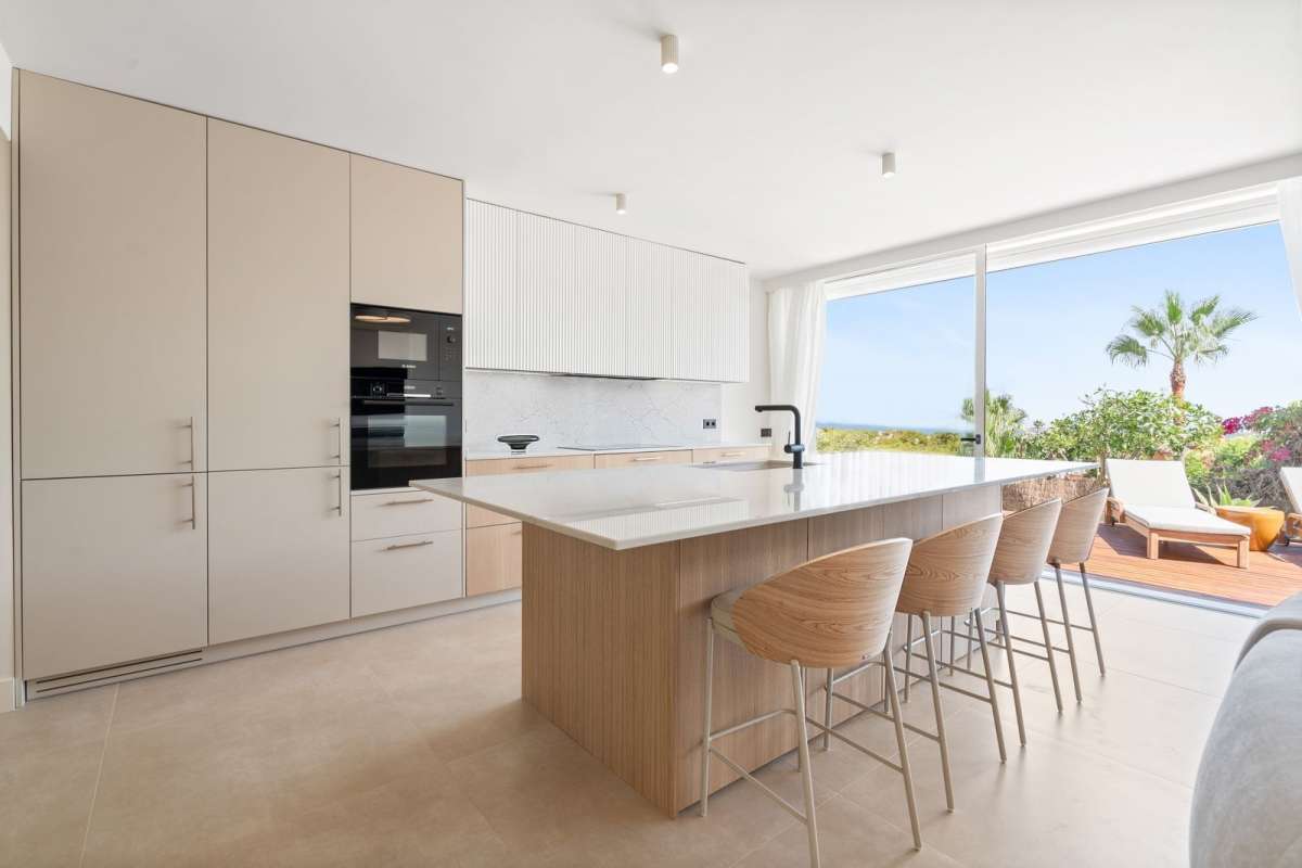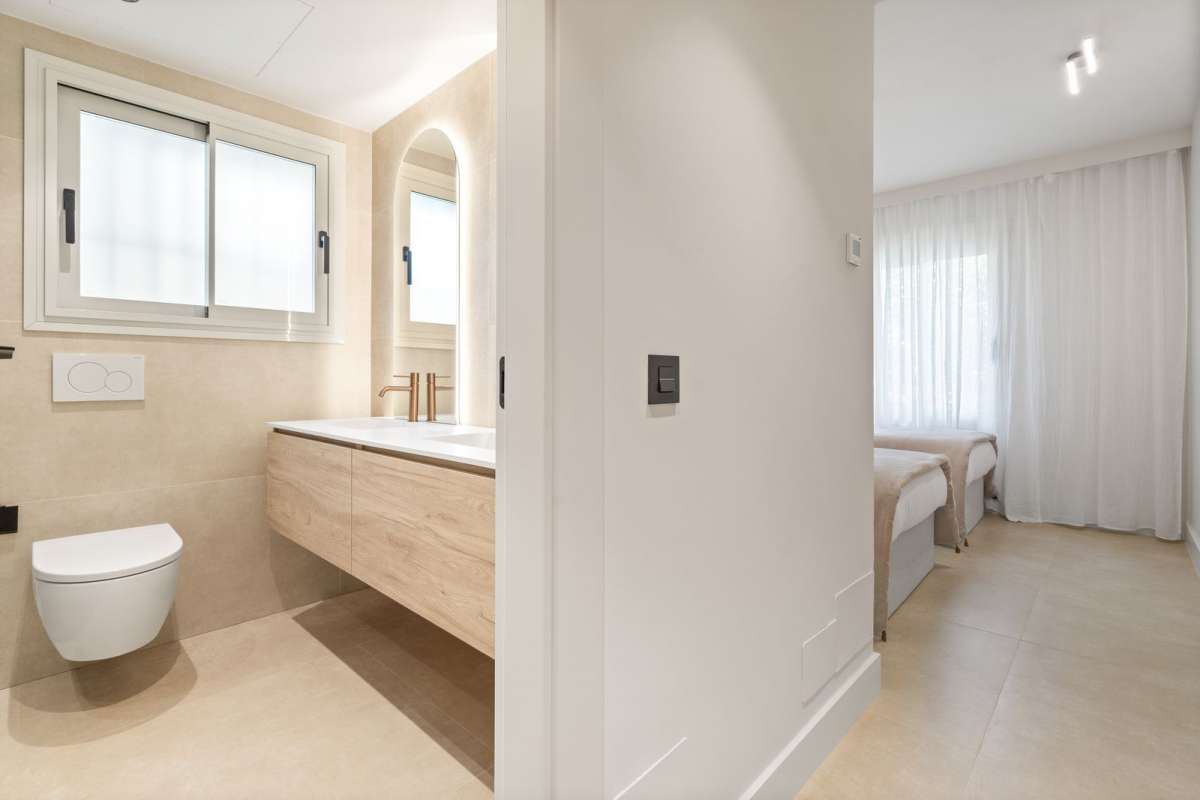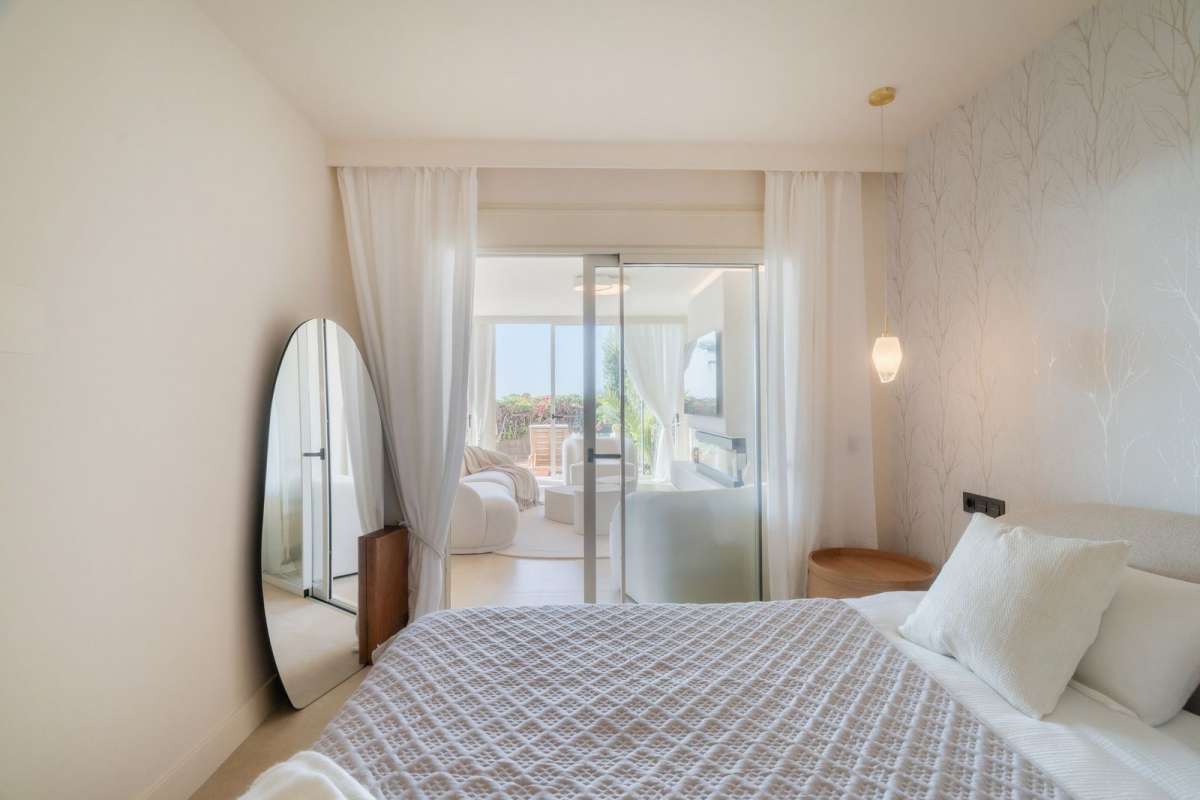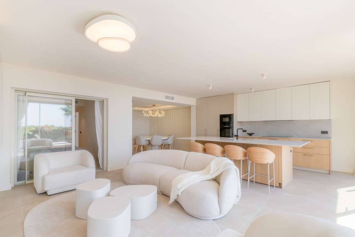 Contemporary Elegance in Nueva Andalucía – Corner Apartment with Large Terrace and Panoramic Sea Views Welcome to this stunning corner apartment, located in one of Nueva Andalucía's most exclusive gated communities. Ideally situated on an elevated floor, this beautifully redesigned 3-bedroom, 3-bathroom residence offers the perfect combination of modern sophistication, comfort, and Mediterranean charm, all in one of Marbella's most desirable areas. Recently renovated to the highest standards, the apartment boasts refined interior design, premium finishes, and exceptional natural light. Its open-plan layout seamlessly integrates an elegant designer kitchen, fully equipped with high-end appliances, with a spacious living and dining area that seamlessly blends with a large natural wood-clad terrace. It features adjustable underfloor heating throughout. Thanks to its corner location, the terrace enjoys greater privacy, ample outdoor space, and panoramic views of the sea and the lush communal gardens. The master suite features a luxurious en-suite bathroom and direct access to the terrace, creating a harmonious indoor-outdoor living experience. Two additional bedrooms with en-suite bathrooms offer comfort and privacy, making this home ideal for families or guests. Located in a secure and well-maintained complex with beautiful gardens and a communal pool, the property is just minutes from first-class golf courses, international schools, Puerto Banús, and a wide range of amenities. Property Highlights: • 3 bedrooms | 3 bathrooms • Completely renovated with high-end materials and elegant details • Corner apartment offering greater privacy and natural light • Large terrace with premium wooden decking and sea views • Open-plan designer kitchen with integrated appliances • Gated community with lush gardens and a pool • Prime location in the heart of Nueva Andalucía An exceptional opportunity to acquire a turnkey residence that perfectly combines luxury, lifestyle, and investment potential. Private viewings available upon request.