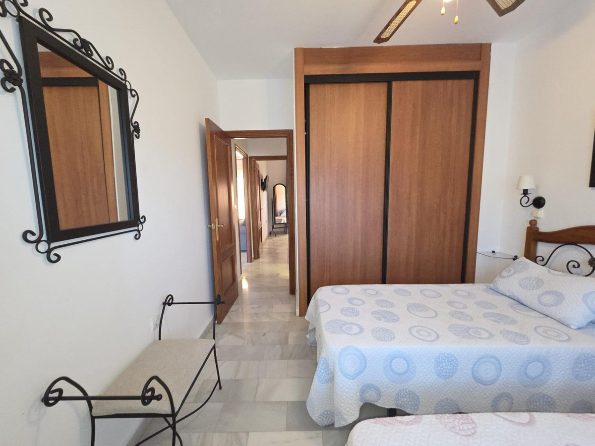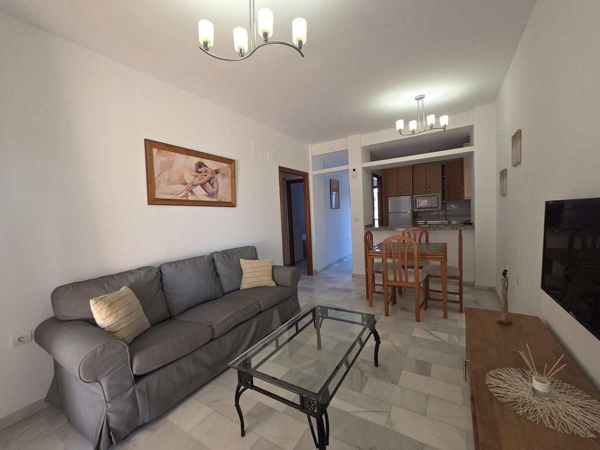 In El Faro – Mijas Costa, we present this wonderful 110 m² apartment that stands out for its spaciousness, brightness, and quality in every detail. A home designed to truly enjoy the Mediterranean lifestyle, surrounded by tranquility, nature, the sea, and a beautiful residential complex with a communal pool where every day feels like a vacation. Upon entering, you'll find a foyer that leads to a spacious hallway with light marble floors, solid wood interior doors, and white walls that further enhance the natural light streaming in from the living room. From the very first moment, you'll appreciate the sense of order, spaciousness, and warmth. The apartment features two generously sized double bedrooms and two full bathrooms, designed for comfort and privacy, ideal for couples, families, or as a second home for relaxation. The living room is spacious, filled with natural light, and has direct access to a terrace perfect for enjoying breakfast in the sun, relaxing with a book in the afternoon, or savoring summer dinners. The terrace is a key feature of the property, allowing you to enjoy the charm of the Costa del Sol climate practically year-round. The kitchen is functional, well-distributed, and offers ample storage space. The entire property exudes aesthetic harmony, is well-maintained, and boasts high-quality materials. The complex is beautiful, meticulously maintained, quiet, and features a communal swimming pool surrounded by green spaces. It's the perfect setting to unwind without sacrificing proximity to everything: beaches, restaurants, supermarkets, and direct access to the highway. Strategically located between Fuengirola and La Cala de Mijas, it's one of the most sought-after areas of Mijas Costa, known for its tranquil, safe, and residential lifestyle. This spacious apartment offers character, quality finishes, abundant natural light, a terrace, a swimming pool, and a premium setting. Ideal for year-round living or as an excellent second home on the Costa del Sol