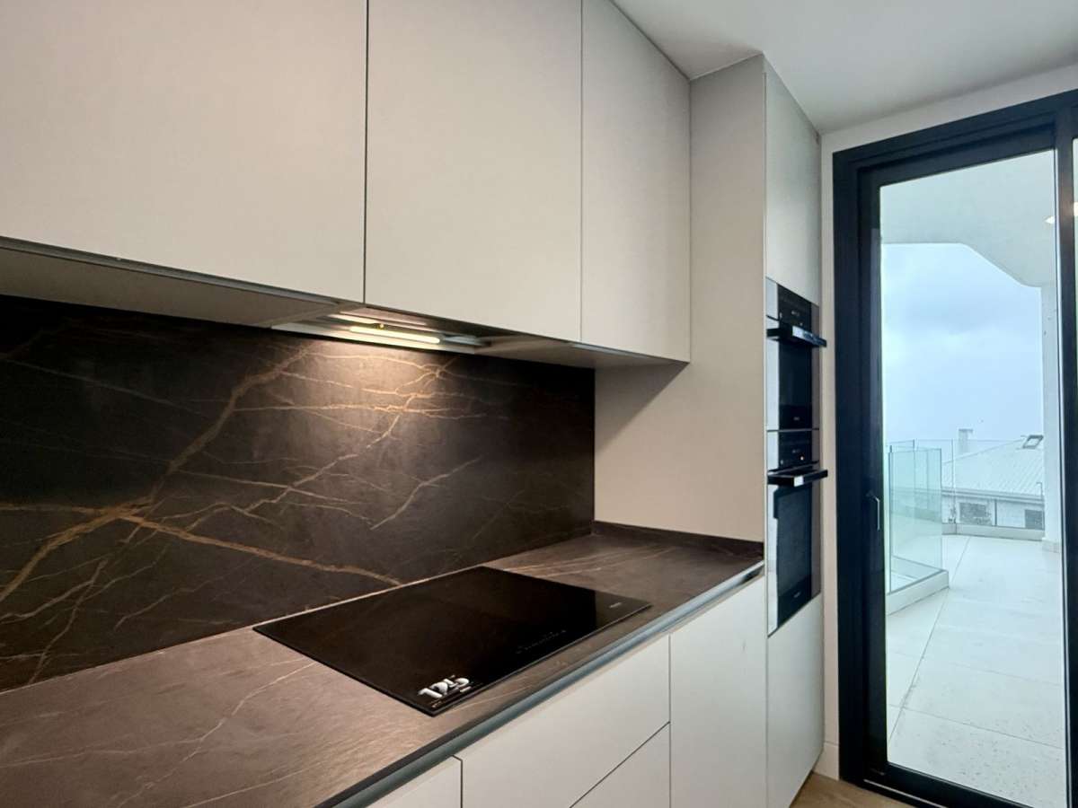 Fully fitted kitchen with high-end appliances, underfloor heating in both bathrooms, built-in wardrobes, two private parking spaces and a storage room.