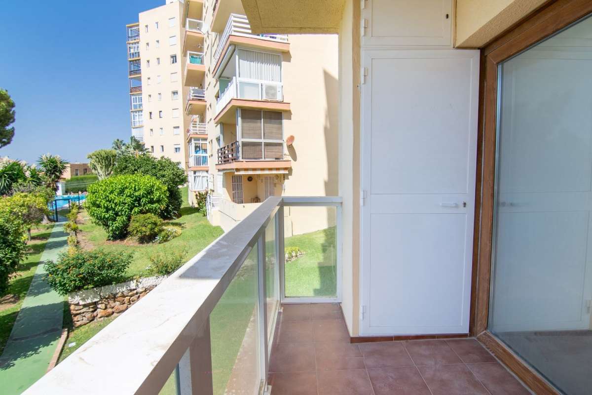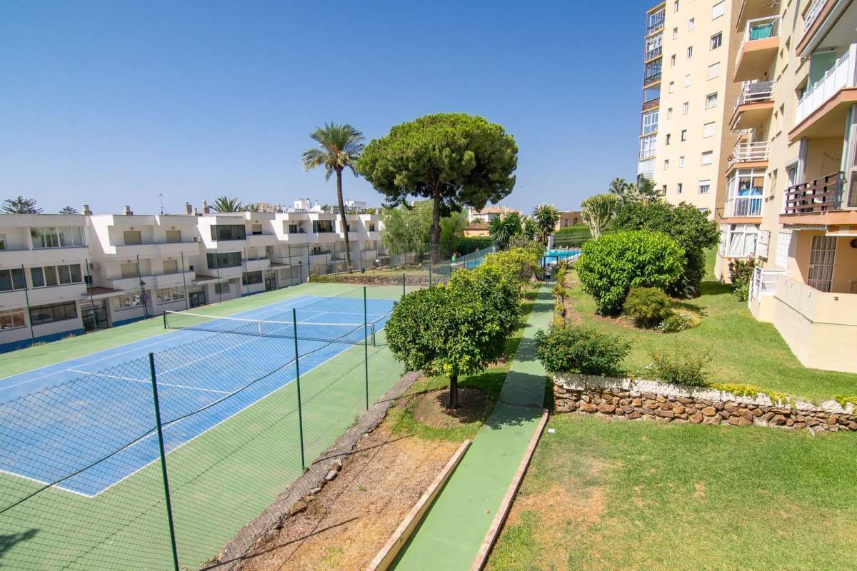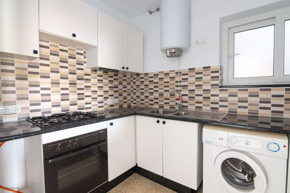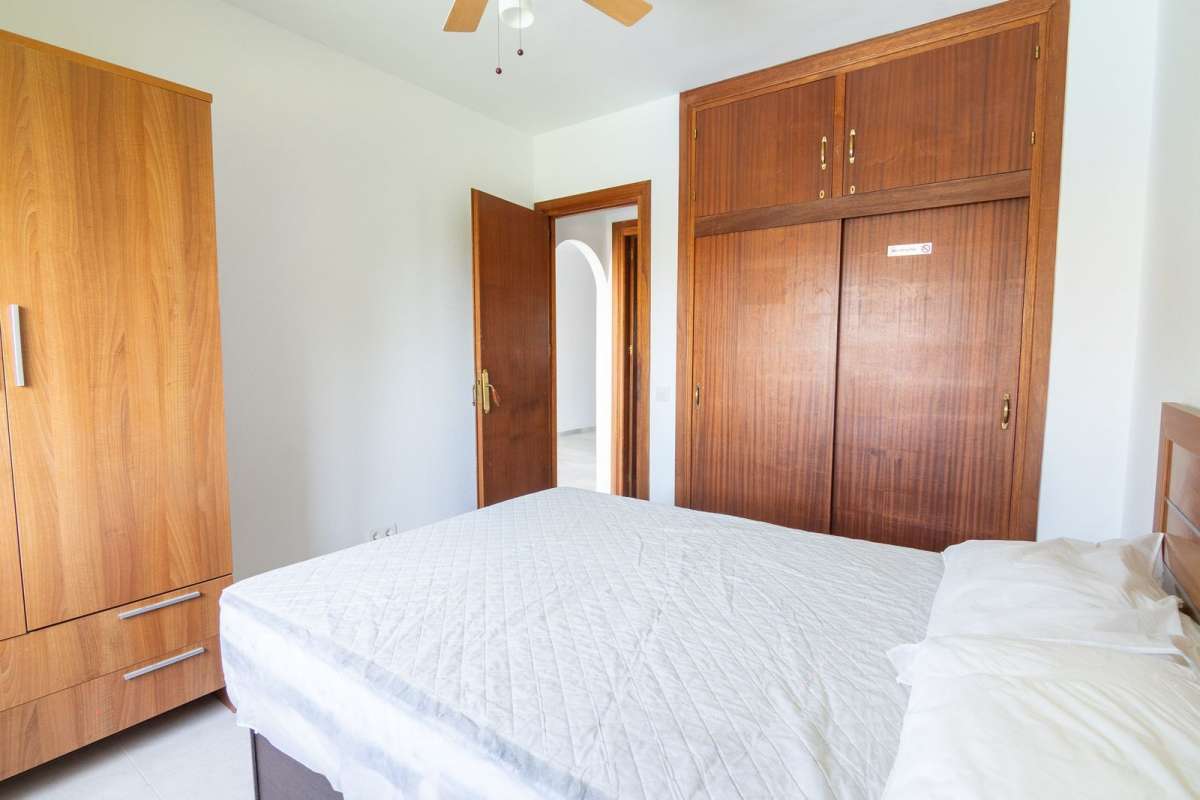 This first-floor apartment features a spacious, fully equipped kitchen and a bright south-facing living room with access to a sunny private terrace offering beautiful views of the community gardens and partial sea views. The perfect spot to enjoy at any time of the day.