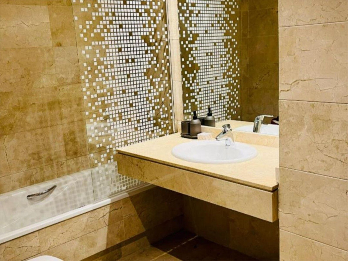 Elegant apartment located in the heart of the exclusive Golden Mile, within a peaceful residential area that perfectly combines tranquility and proximity to the most emblematic places in Marbella.The property was completely renovated just three years ago, standing out for its contemporary design and excellent use of space and natural light. Every detail has been carefully considered, from the top-quality finishes to the modern aluminum window frames, which provide comfort and efficiency.It has two bedrooms, one of which has an en-suite bathroom, as well as a second full bathroom. The living room and master bedroom are equipped with air conditioning and heating, ensuring an ideal temperature throughout the year.The residential complex offers a privileged living environment: 24-hour security, large garden areas, a paddle tennis court, and a large communal swimming pool perfect for enjoying the sun and Mediterranean climate. Thanks to its strategic location, you will have easy access to the beach, the center of Marbella, and the famous Puente Romano resort, enjoying a sophisticated lifestyle with everything just a few minutes away.