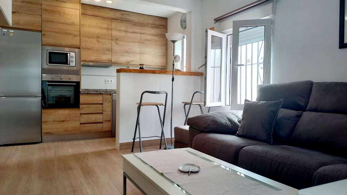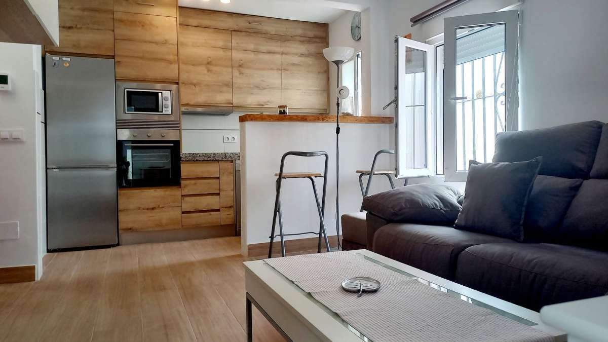 The property is in excellent condition throughout - completely renovated and decorated, rewired and with new plumbing. A front terrace welcomes you and offers a lovely, cosy, extra space all year round. When you enter the property itself, you will find a spacious, well-lit living room, with an open plan, fully equipped kitchen.