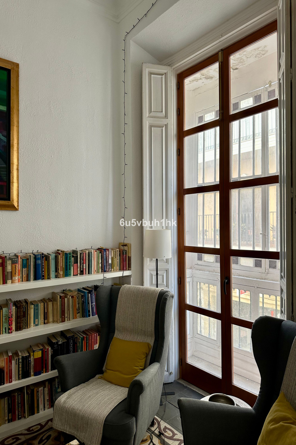 A spacious 3-bedroom apartment on the first floor of an elegant late 19th-century building, located in the cultural heart of Málaga's Centro Histórico, just a short walk from the Teatro Cervantes.