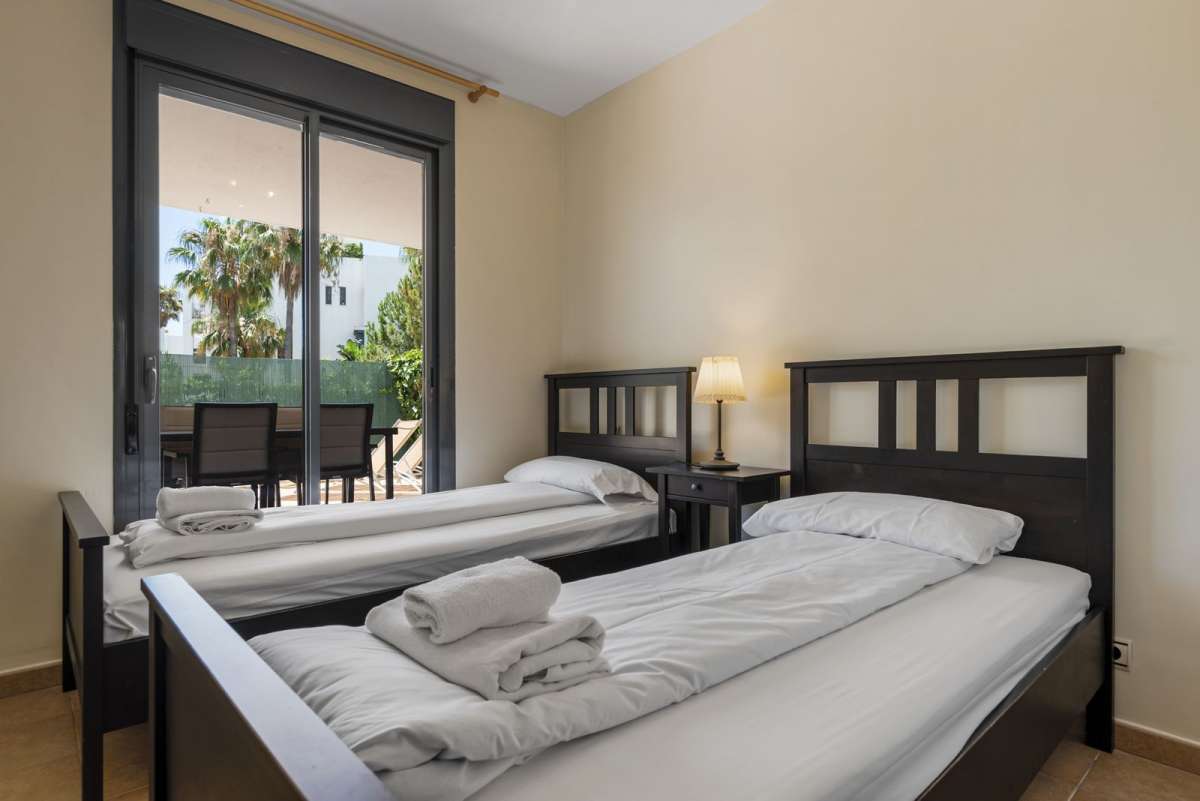 This beautiful apartment is located in the popular Alamar with walking distance to La Cala city centre and the beach. It features 2 bedrooms, 2 bathrooms, a utilityroom, a modern kitchen, a large livingroom with a sofa-bed and a large private terrace with a couple of meters to the pool. There is a padel court available for you in Alamar for free.