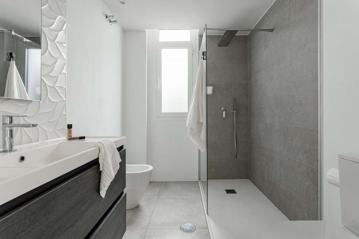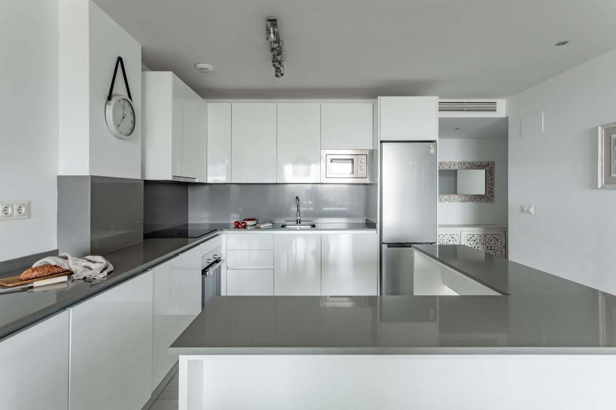 Inside, the open-plan layout combines a fully equipped kitchen, dining area, and bright living room with direct terrace access through elegant sliding doors. The property also includes three generous bedrooms and two sleek bathrooms with spacious showers and underfloor heating, all designed for convenience and comfort.