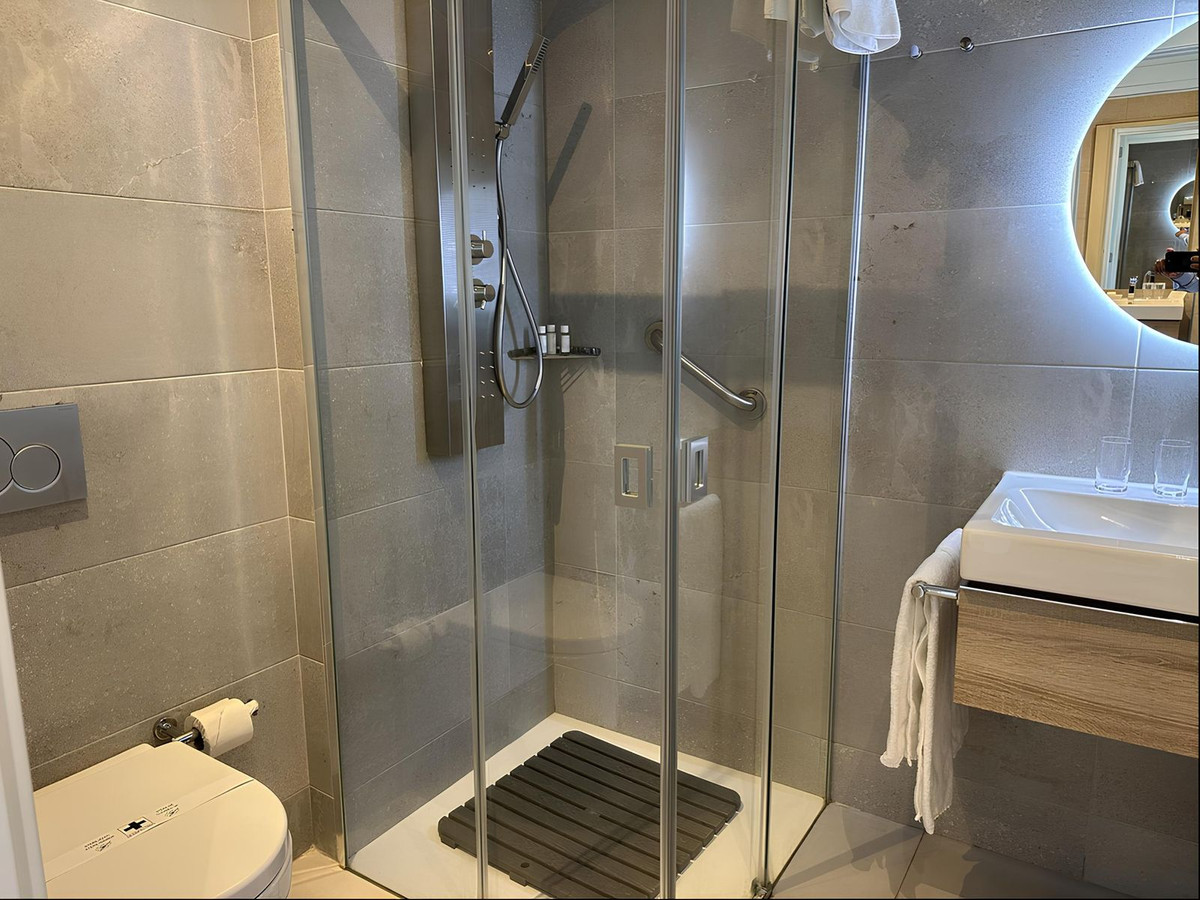 This apartment offers two spacious bedrooms and three sleek bathrooms, complemented by a bright, open-concept kitchen, dining, and living area. Step out onto your expansive private terrace featuring a plunge pool and panoramic views of the Mediterranean. The kitchen is fitted with top-of-the-line Miele appliances, and the home includes integrated air conditioning and electric blinds throughout. Sold fully furnished, the property also comes with underground parking and a secure storage unit. Located within a gated community with a video entry system, residents enjoy access to a heated pool for year-round swimming, a large walk-in pool, a fully equipped gym, a Turkish bath, and a relaxing sauna.