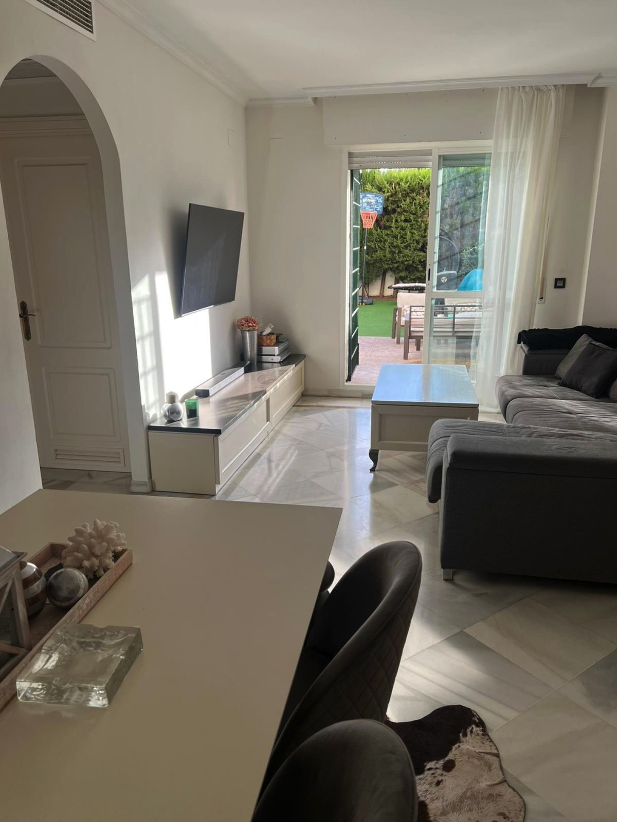 Discover this enchanting, fully renovated apartment with a tourist rental licence in the exclusive Urbanización Lorcrimar, nestled in the heart of Nueva Andalucía, Marbella's upscale 'Golf Valley' on the sun-kissed Costa del Sol. This prime location places you just a 5-minute stroll from the glamorous Puerto Banús marina—with its designer boutiques, yacht-filled harbour, fine dining, and vibrant nightlife—and mere steps from pristine beaches like Playa de Mistral. Surrounded by world-class golf courses such as Aloha and Los Naranjos, international schools, supermarkets, gyms, and restaurants, it offers effortless access to the A-7 motorway for quick trips to Estepona or Málaga Airport. Embrace over 300 sunny days a year in this secure, gated community, ideal for families, expats, or investors seeking high rental yields through short-term lets like Airbnb, thanks to its coveted position and low maintenance costs. Spanning 71 m² of stylish interior space with a generous 66 m² private patio, this bright and airy residence has been meticulously refurbished with high-quality materials for modern comfort. The thoughtful layout—featuring an entrance hall (1.65m x 1.69m), a fully equipped kitchen (3.22m x 2.49m), a spacious living-dining room (6.18m x 3.34m) flowing seamlessly outdoors, two ample bedrooms (3.43m x 2.92m and 4.17m x 2.92m) with fitted wardrobes, and a contemporary bathroom (2.34m x 1.87m)—creates a welcoming haven. Included are a private parking space and storage room, enhancing everyday convenience. The community boasts well-maintained gardens and a refreshing swimming pool, fostering a resort-like atmosphere with excellent revaluation potential in one of Marbella's most consolidated and exclusive areas. This versatile property combines design, functionality, and a privileged setting—perfect as a permanent home or lucrative investment with strong profitability and minimal upkeep. Contact us today to arrange a viewing and unlock your slice of Mediterranean paradise.