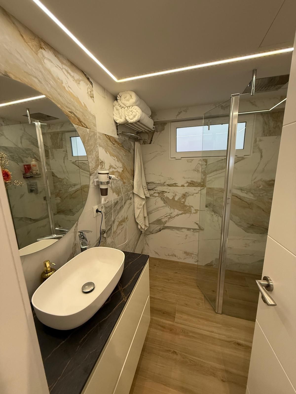 No viewings before September 8 Ground floor apartment for sale, recently completely renovated. Located in the central area, very quiet and family-friendly. All kinds of businesses at street level without needing to drive, beach 5 minutes away. Details: Centralized ducted air conditioning. Double insulating plasterboard + phonique panels. Double glazed windows. Armored door.