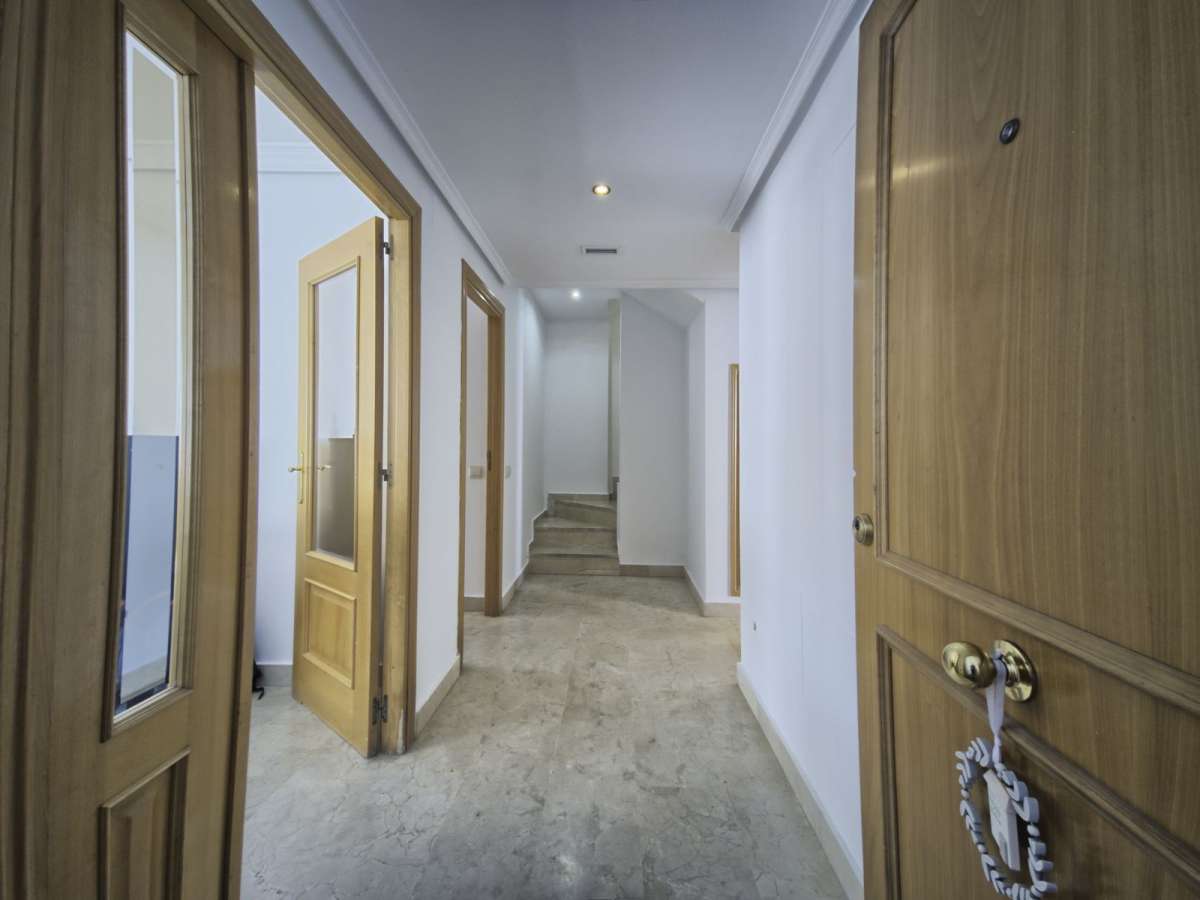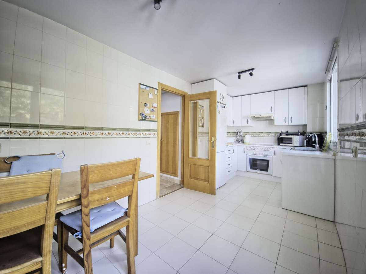 On the main level, the apartment features a large, airy living room that opens onto an expansive south-facing terrace—perfect for enjoying the sun or entertaining guests. There is a fully fitted kitchen with a separate utility room, a spacious master bedroom with an en-suite bathroom, and an additional guest bathroom.