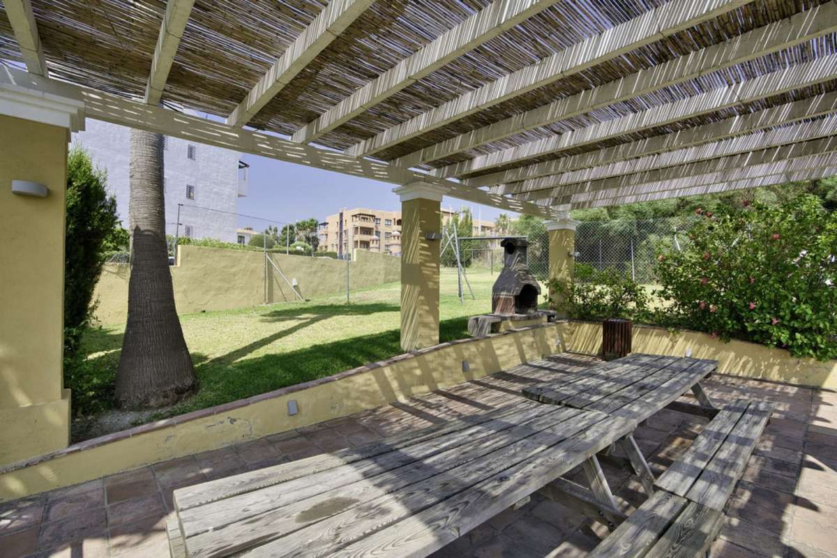 Residents enjoy a large communal swimming pool, tropical gardens, a picnic and BBQ area, and a grassy play area with football goals—ideal for children. A peaceful and family-friendly environment.