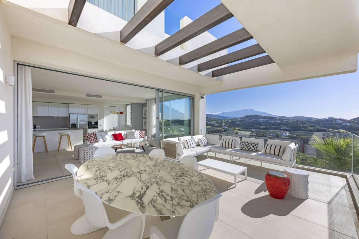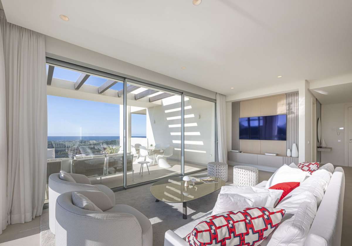 Exquisite apartment located in the prestigious Marbella Club Hills development. A 5-star residence set within a privileged natural environment, in collaboration with the iconic Marbella Club Hotel. With wide, unobstructed panoramic views of the Mediterranean and Africa, it is surrounded by an impressive mountainous landscape. This property offers a sophisticated lifestyle in perfect harmony with nature, just minutes from Puerto Banús and Marbella.