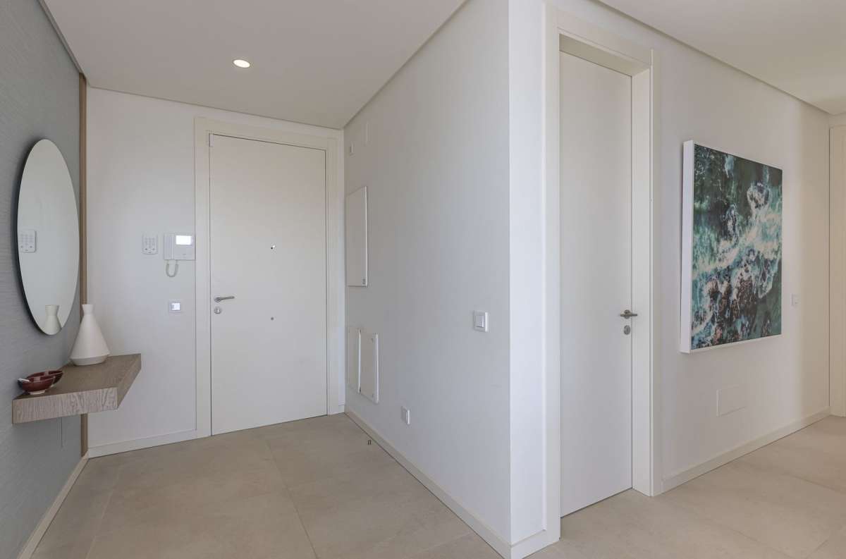 The apartment features spacious terraces that capture sunlight throughout the year. Furnished with a modern and functional design, they are perfect for both relaxing and sharing special moments in an unparalleled setting. In addition, the private garden, equipped with sun loungers, offers a tranquil oasis.