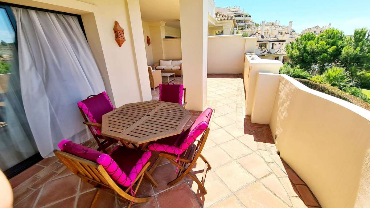 Beautiful and spacious 2 bedroom apartment located in the five star urbanisation of Capanes Del Golf, Benahavis. This apartment enjoys wonderful golf, lake and mountain views. The kitchen has been made open plan into the lounge. This apartment can very easily be converted into a 3 bedroom if you so wish as there is plenty of space to do this change. Both the master bedroom and second bedroom have en suite bathrooms. The property enjoys a large terrace to enjoy the morning sun. You will enjoy beautiful sunsets from this terrace. There is one storeroom and one parking space in the garage.