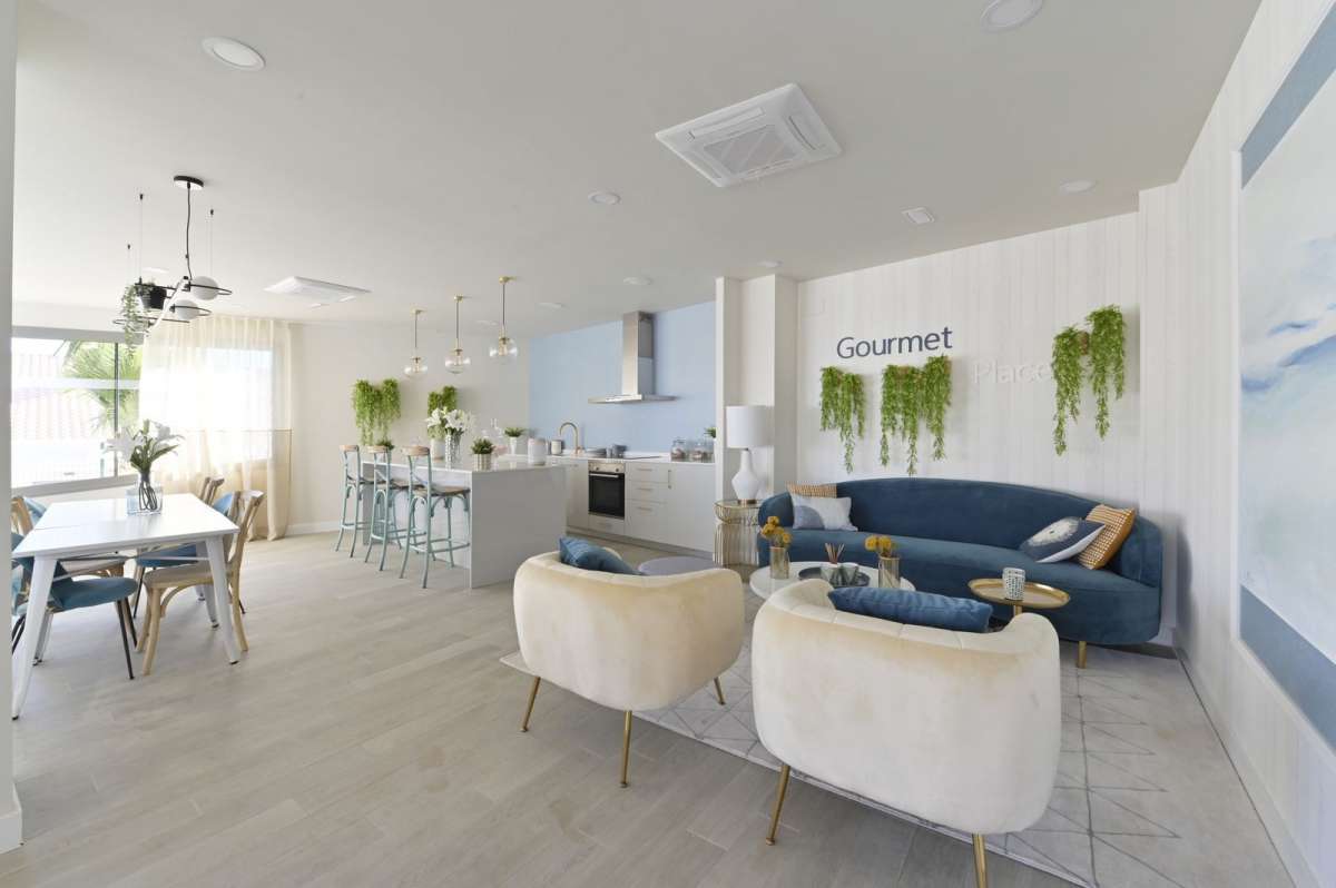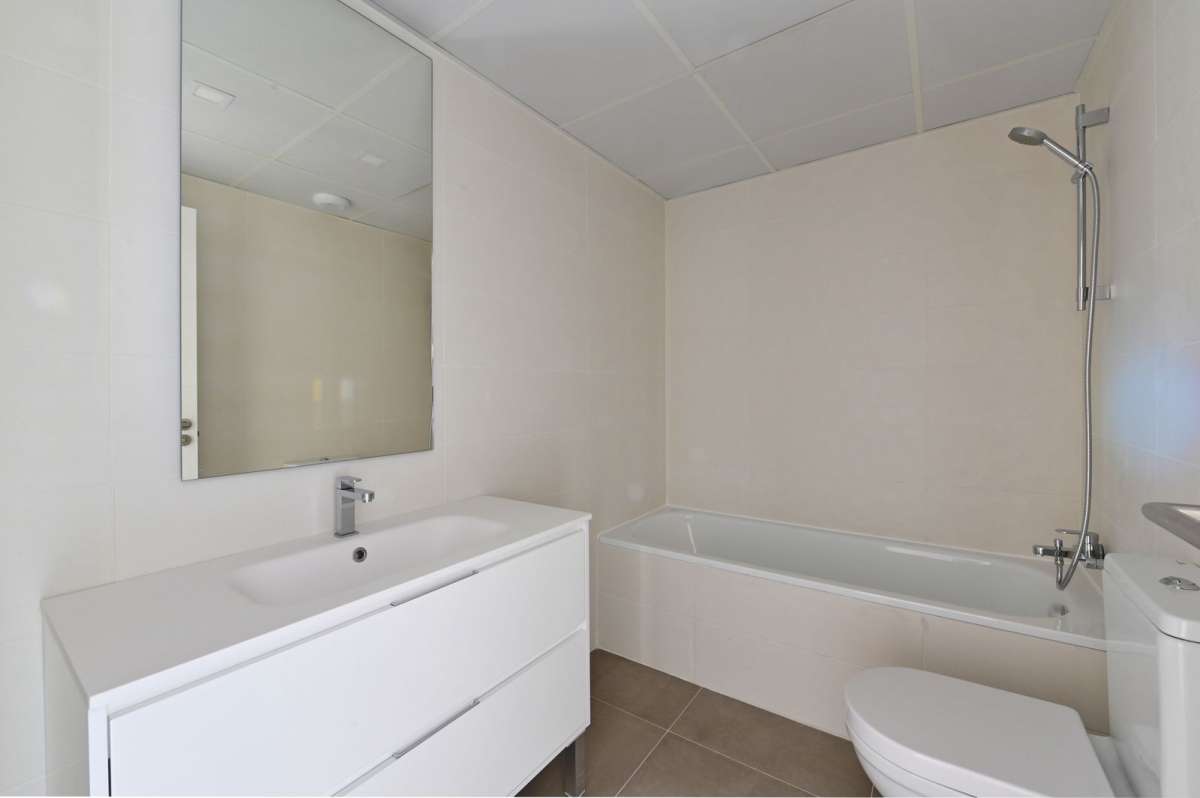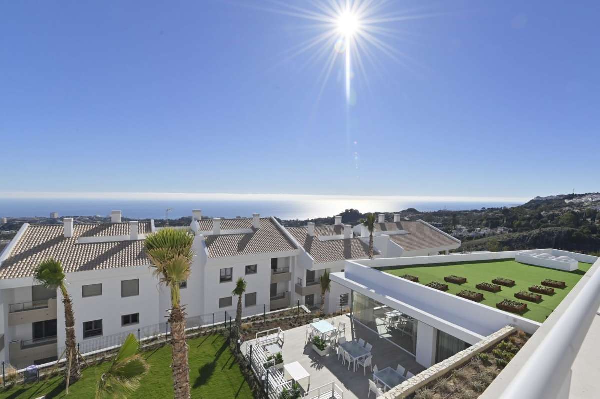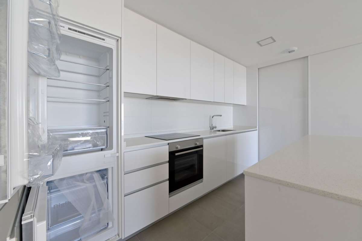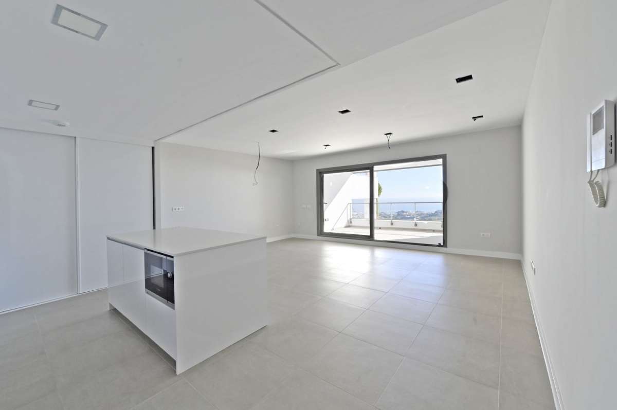 The property has 3 bedrooms with fitted wardrobes and 2 full bathrooms, one of which is en suite in the master bedroom, a living room leading to a large 24.88 m² south-facing terrace with unobstructed sea views.