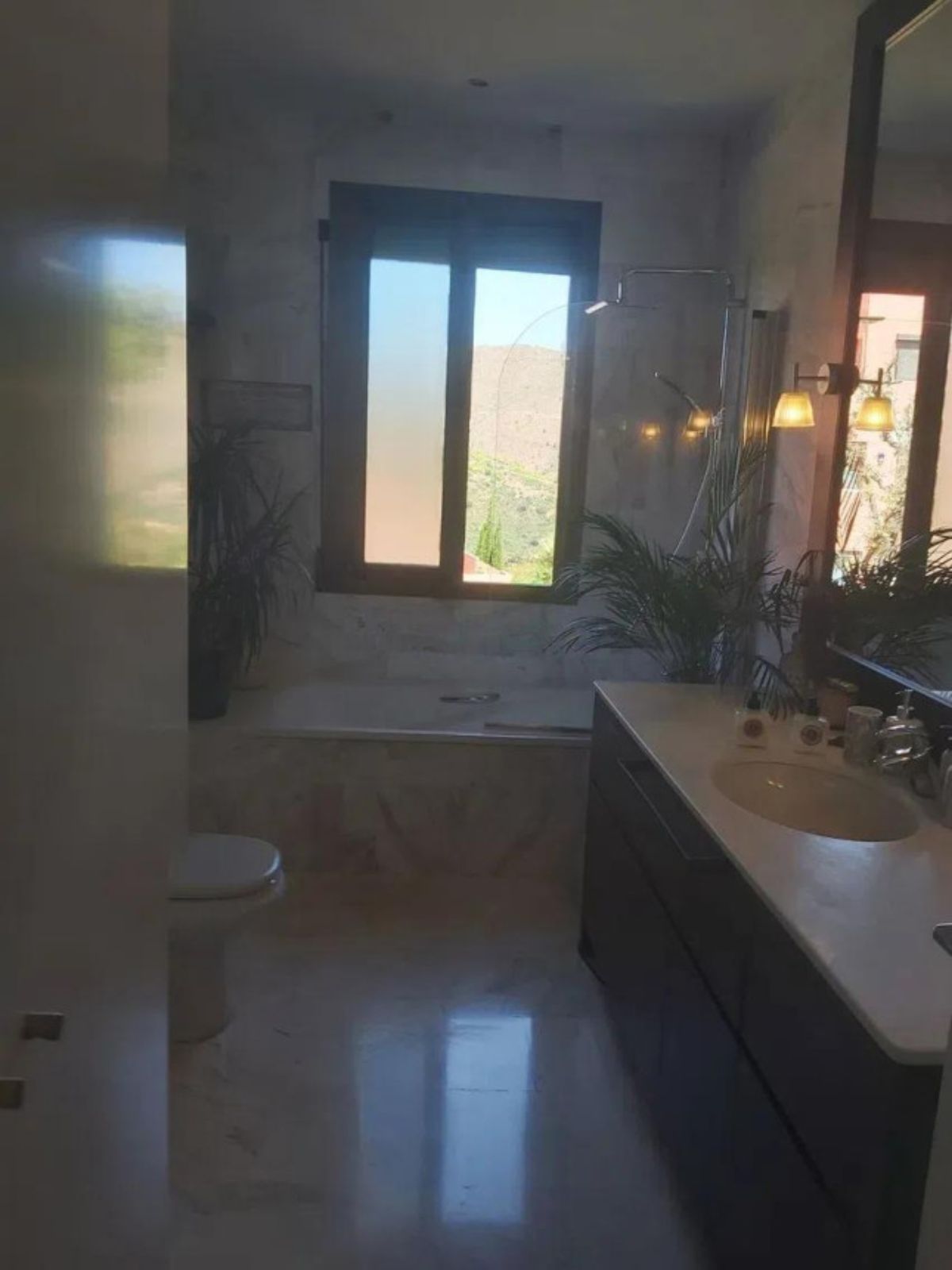 a highly sought-after area where no more construction is allowed: exceptional apartment with 3 spacious bedrooms, with east-west orientation and panoramic views of the sea and the hills of Mijas Costa. It is currently being connected to an internal solar plant. This beautiful apartment is located in the gated community , in a pure Andalusian style, with lush and flowery gardens. It offers a spacious, modern and very bright living space with numerous windows that open to nature and a fantastic sea view. The kitchen is open concept. It has 3 spacious bedrooms and 2 bathrooms, with a constructed area of approximately 200 m², including 2 terraces of approximately 45 and 10 m². This property includes a storage room and a private parking space. The urbanization consists of only 45 apartments with 2 swimming pools, the largest of which is an infinity pool with incredible panoramic views of the entire coast. The property is located just 7 minutes (6 km) by car from Elviria. This privileged location, very close to the famous German School, is very quiet and at the same time offers all services. There are several golf courses less than 20 minutes away by car, and Marbella is only 18 minutes away.