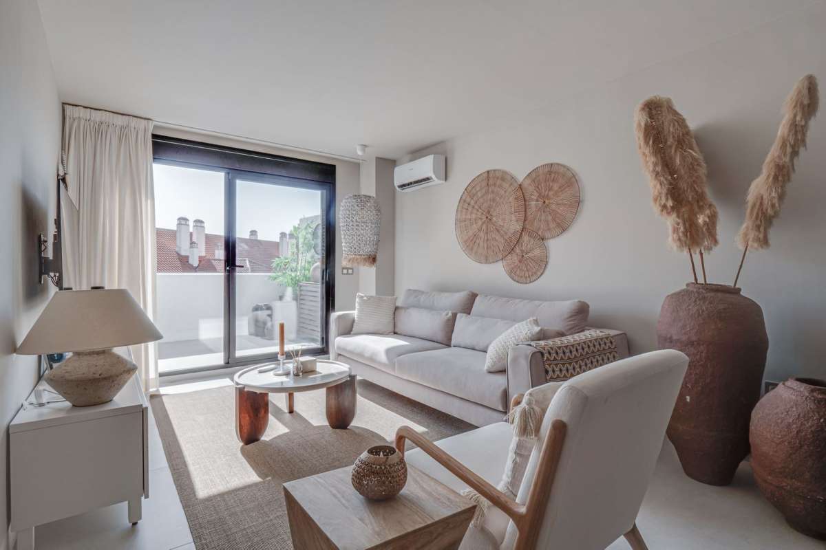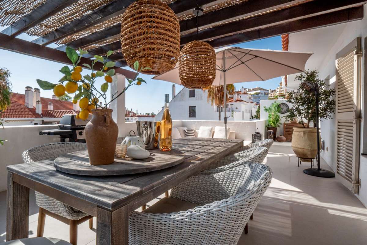 Beautiful, stylishly renovated 2-bedroom apartment in the charming, popular, typically Spanish urbanization of La Maestranza, in the heart of Nueva Andalucia.