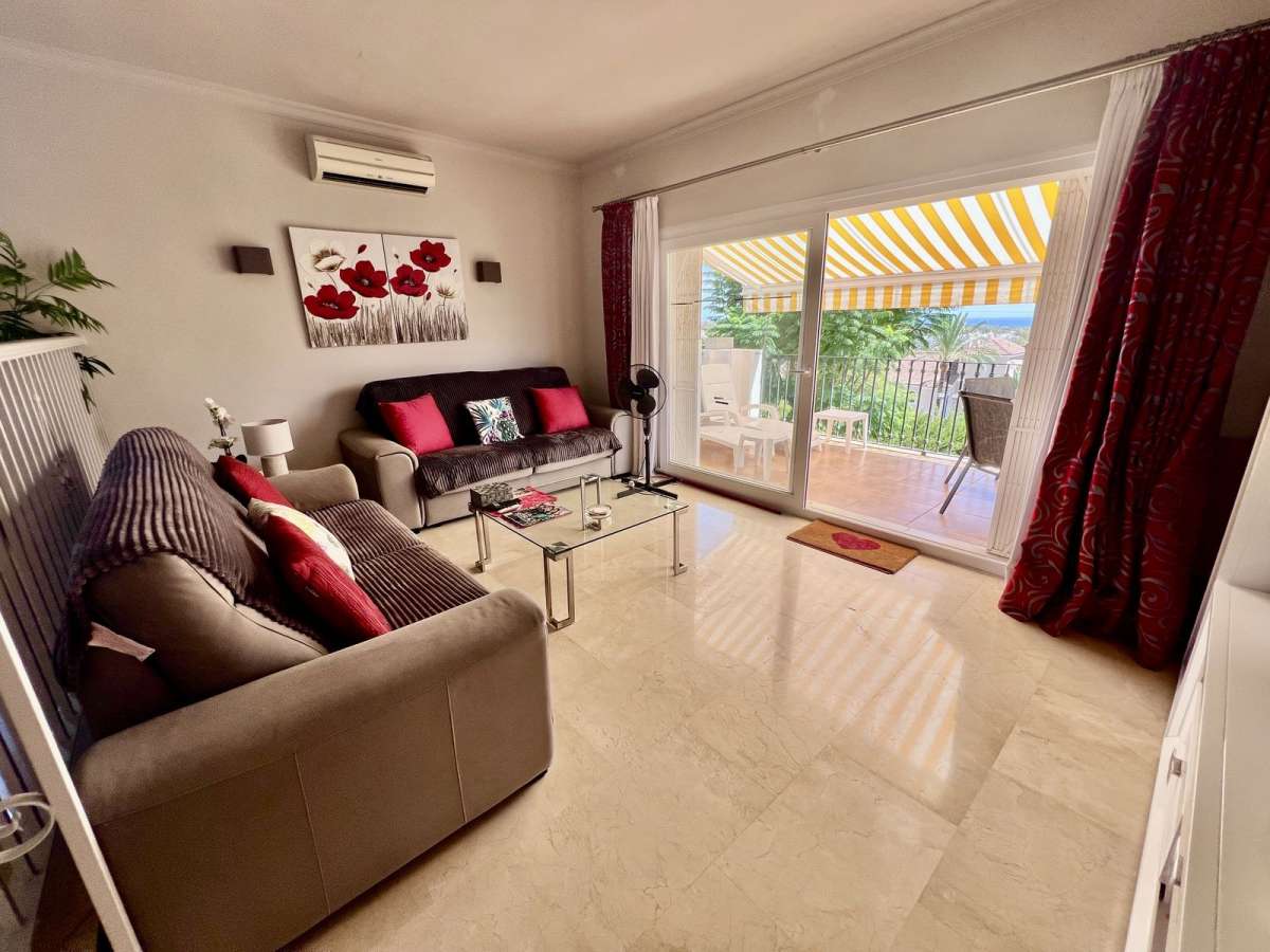 This south facing apartment is in fantastic condition and has beautiful views across the community pool and gardens to the Mediterranean sea and La Concha mountain. The entrance hall leads into a spacious living dining room and a sunny terrace which has plenty of space for dining and relaxing.