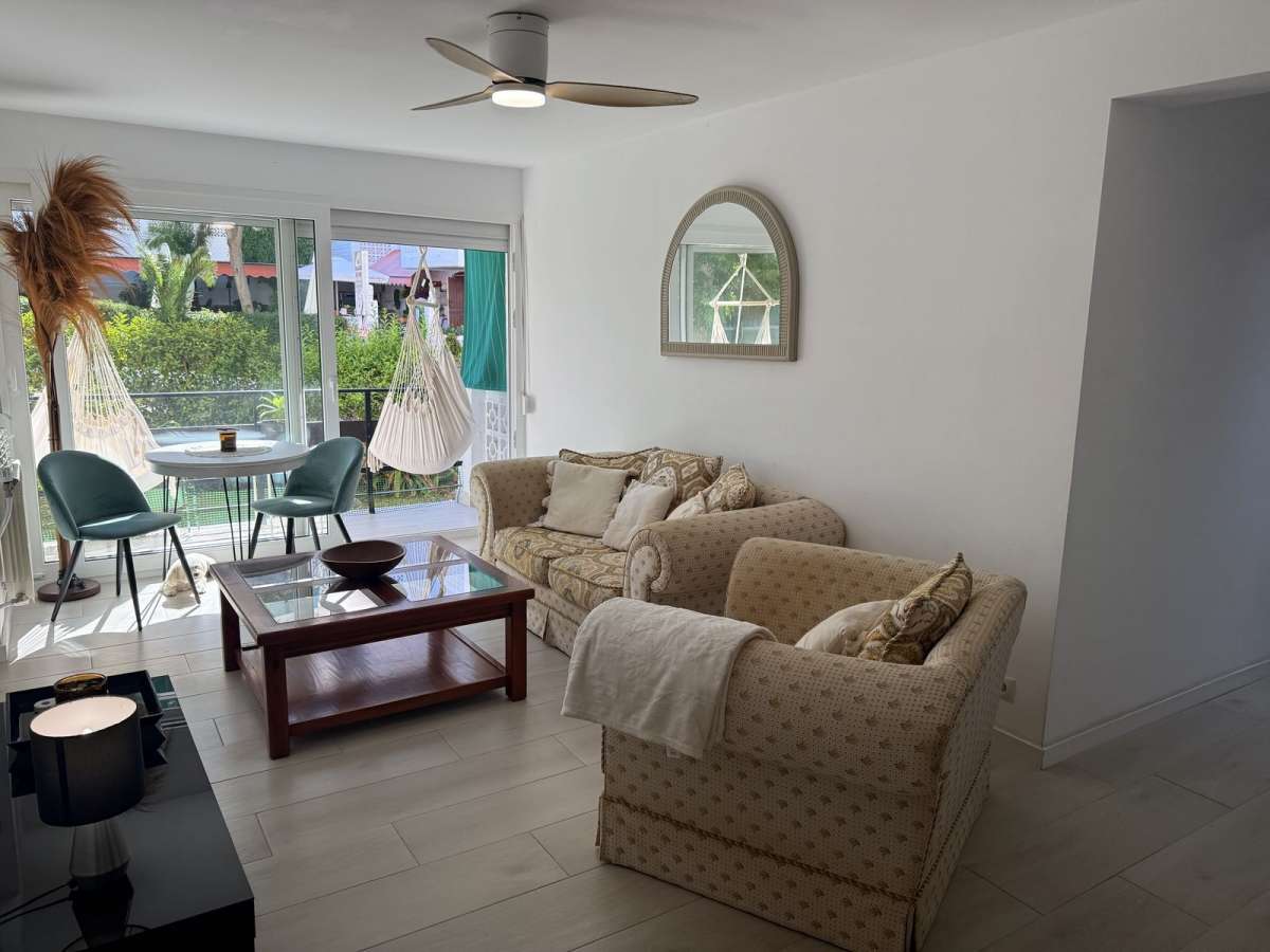 Discover this charming and fully renovated 3-bedroom apartment, located just a 10-minute walk from the beautiful beaches of Estepona. Nestled in a picturesque whitewashed urbanization with lush gardens, a large communal swimming pool, and tennis courts – it offers the perfect combination of comfort, style, and Mediterranean lifestyle.