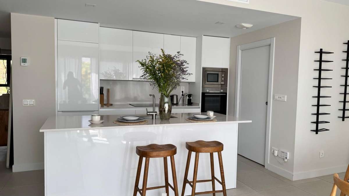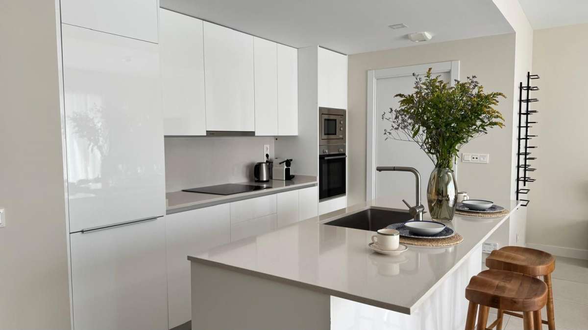 The property has undergone a complete renovation — everything is brand new, modern, and finished with great attention to detail. The open-plan kitchen and living area lead out to a large terrace with beautiful sea views — perfect for relaxing or entertaining.