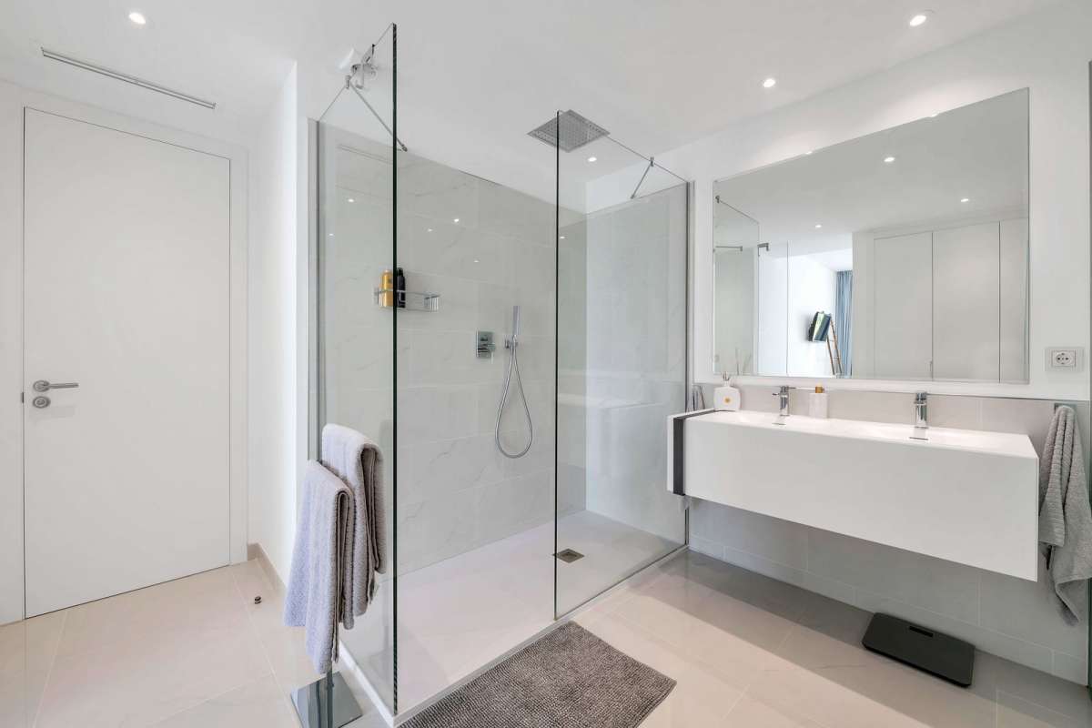 With 91 m² of elegant interior space and an impressive 81 m² terrace, this home is designed for the Mediterranean lifestyle. The spacious open-plan kitchen and living area connect seamlessly to the expansive terrace through floor-to-ceiling sliding glass doors, creating a light-filled environment perfect for both entertaining and relaxation.