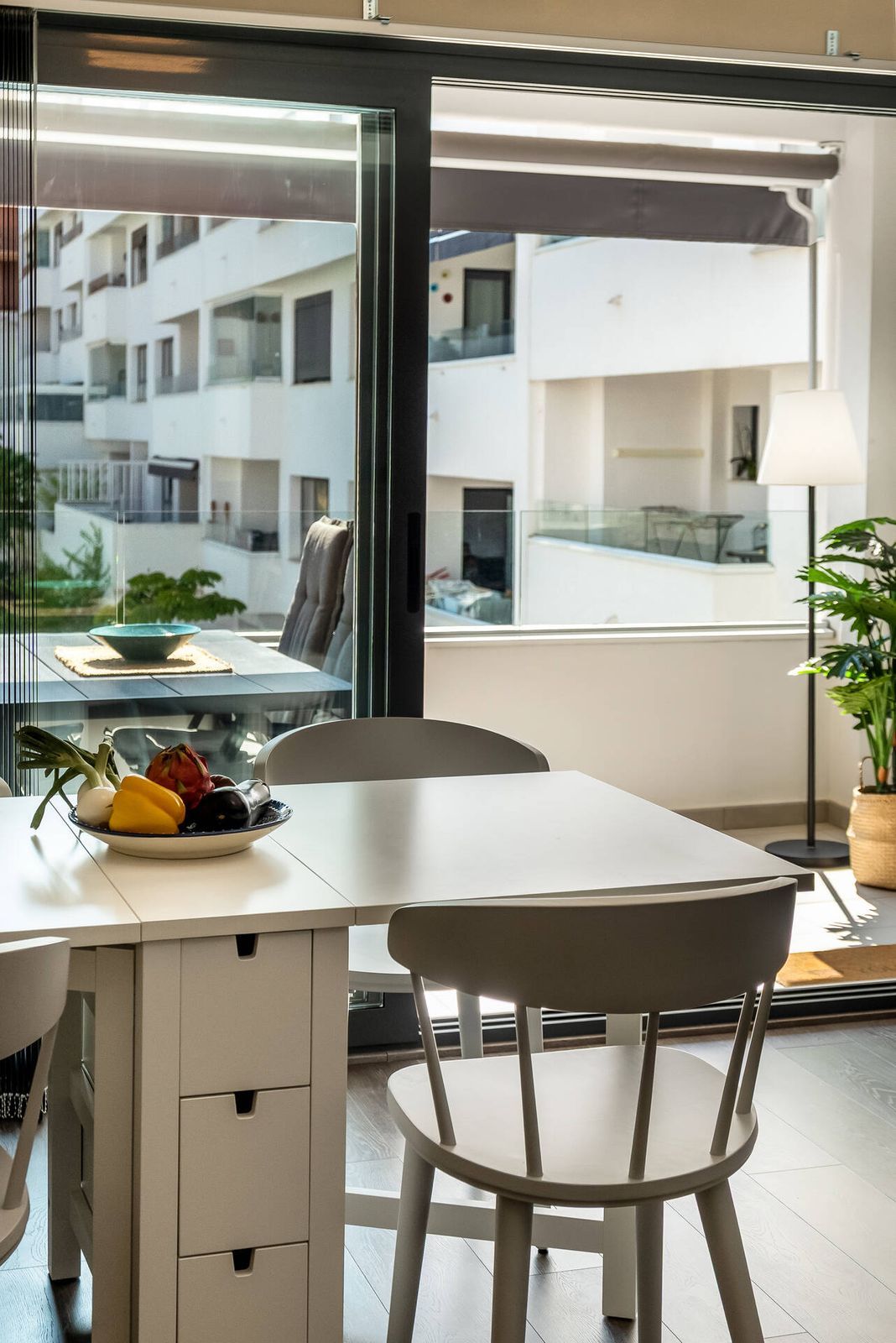 In addition to the pool, the community offers an outdoor gym and a children?s playground. A home that suits both permanent living and holidays for those seeking a stylish, practical, and ready-to-move-in dream property in the heart of Estepona, close to everything.The apartment is primarily sold furnished, with a carefully selected interior. It is modern, bright, and timeless in a Nordic style.