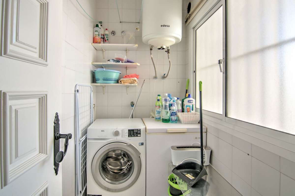 The apartment is distributed as follows: upon entering, we find a hallway with a laundry room on the right. We continue through the hall, which contains two double bedrooms with built-in wardrobes that share a bathroom, and the master bedroom (a huge one with an ensuite bathroom and access to the terrace).