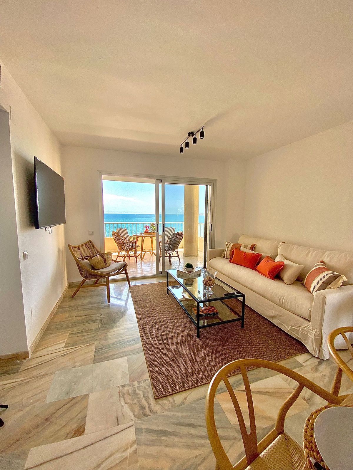 Description Middle Floor Apartment, Fuengirola, Costa del Sol. 2 Bedrooms, 1 Bathroom, Built 91 m². Setting : Beachfront, Town, Beachside, Close To Sea. Orientation : South. Condition : Excellent. Climate Control : Air Conditioning. Views : Sea, Beach, Panoramic. Features : Lift, Fitted Wardrobes, Near Transport, Private Terrace, Double Glazing. Furniture : Fully Furnished. Kitchen : Fully Fitted. Parking : Communal. Category : Beachfront, Investment, Reduced.