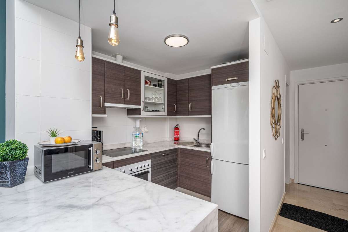 Beautiful newly build 2-bedroom apartment with private terrace in a beautiful residential in a recently built complex in Manilva. The open style kitchen is completely fitted with appliances and gives a full view of the living room area and the terrace. It is covered and offers views to the common areas of the residential. The master bedroom is large and bright. There is a second bedroom with access to a small private terrace. Both bedrooms share a full family bathroom with bathtub. The property is sold partially furnished and enjoys finishes like marble floors throughout and central AC system. The residential is gated and includes innovative and amazing amenities that are in the process of being finished, such as: infinity edge pool, chiringuito, movie theater, dedicated co-working space, large children's splash pad, children's pool and playground, paddle, tennis and outdoor fitness court, bbq areas, concierge service and shuttle bus! The location is ideal, only a few minutes' drive away from the closest beach and amenities, less than 15 minutes away from Sotogrande Port and less than 10 from Duquesa Port. There are also many golf courses in the area and International schools.