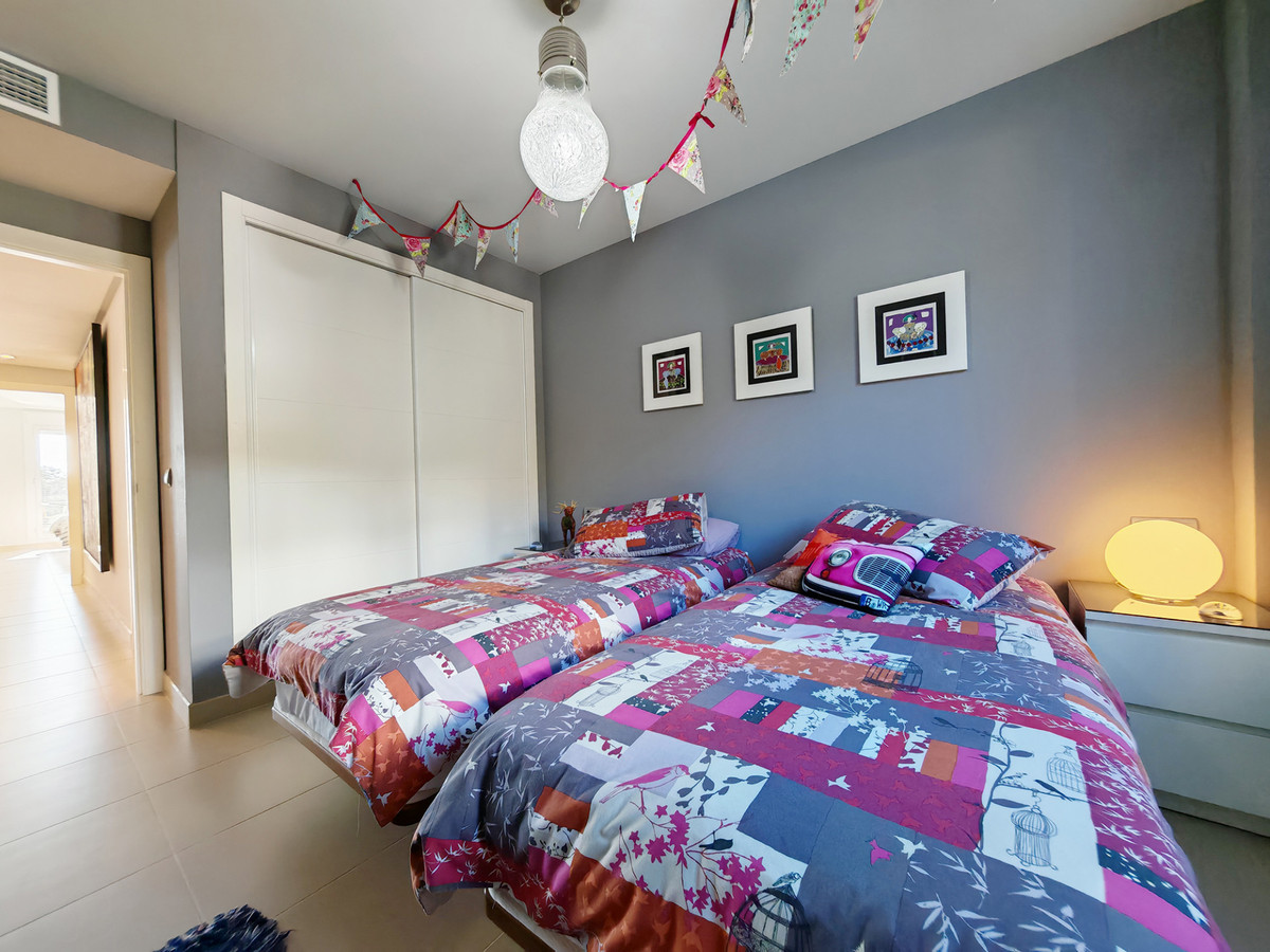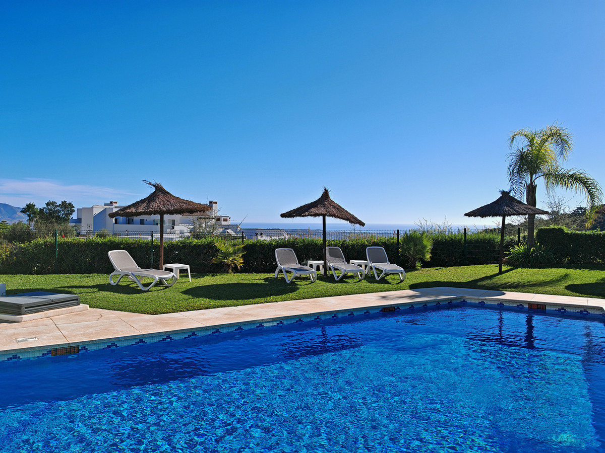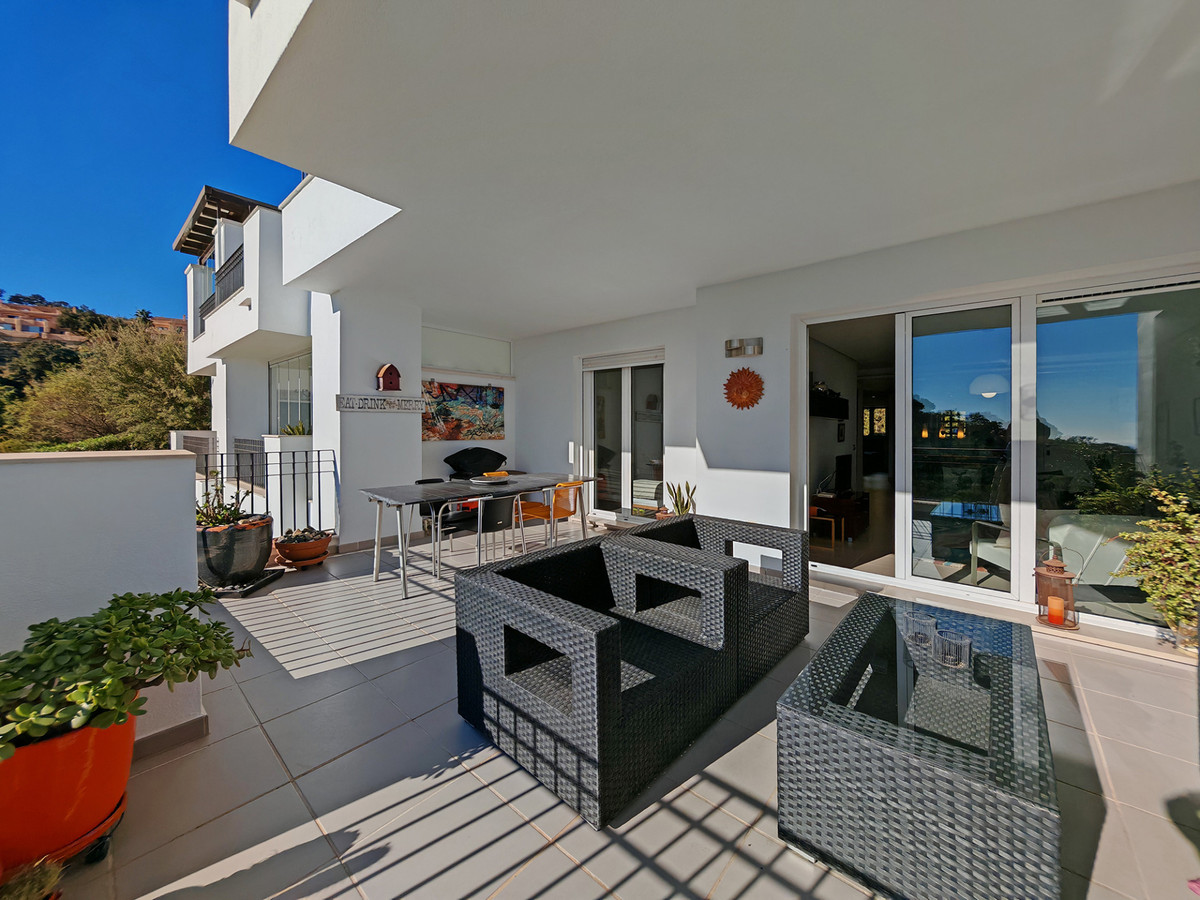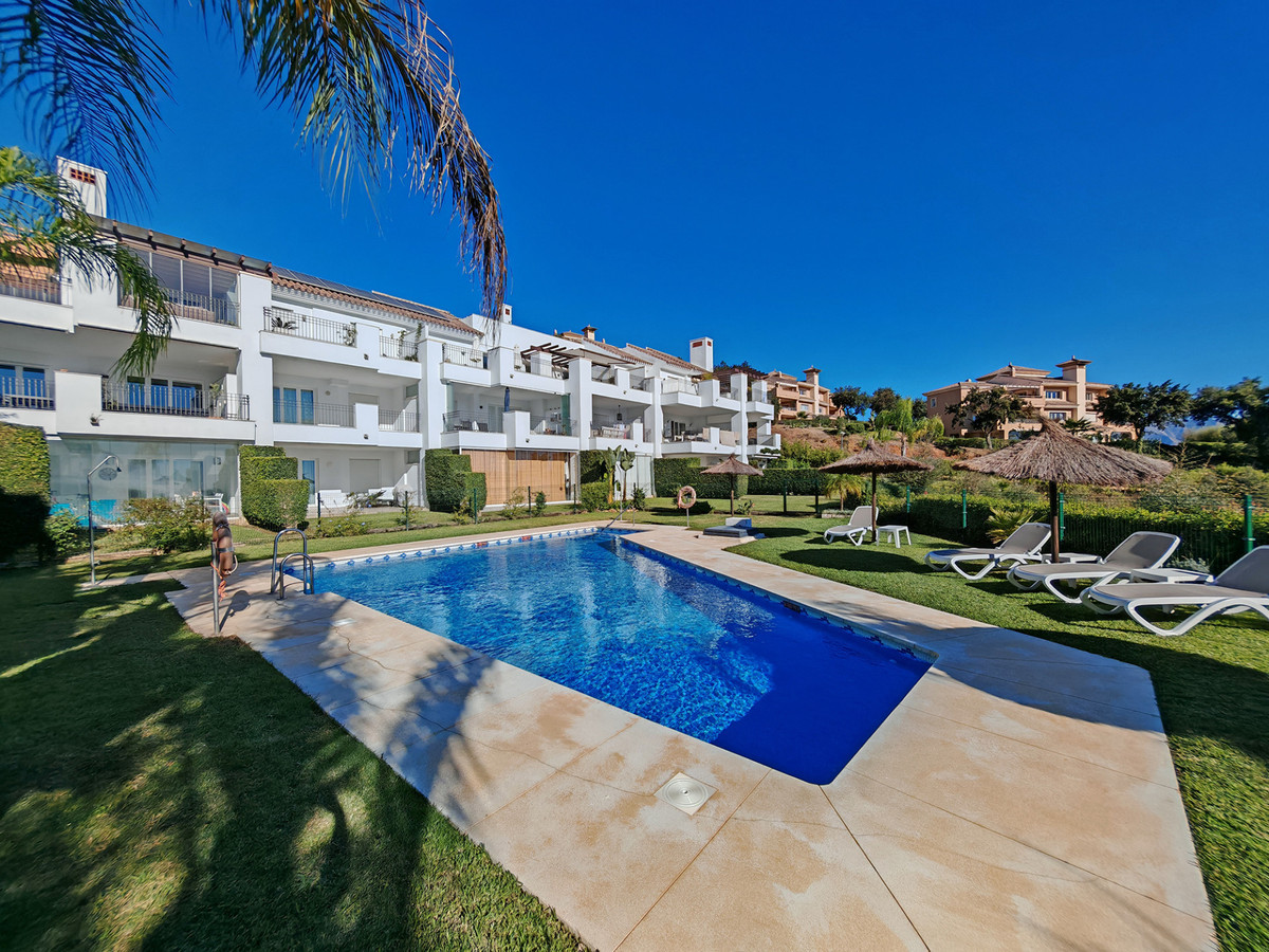 Apartment for sale in La Mairena, Marbella with 2 bedrooms, 2 bathrooms, 1 on suite bathroom and with orientation south, with communal swimming pool, private garage (1 parking spaces) and communal garden. Regarding property dimensions, it has 93.75 m² built and 29.65 m² terrace. Has the following facilities mountainside, air conditioning, fully furnished, fully fitted kitchen, utility room, gym, security entrance, double glazing, video entrance, private terrace, water tank, sea view, country view, mountain view, golf view, internet - wi-fi, covered terrace, fitted wardrobes, gated community, lift, garden view, panoramic view, uncovered terrace, balcony, spa, wheelchair-accessible and excellent condition.