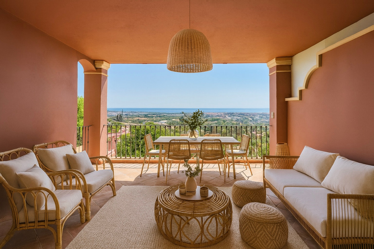 New to the Market!Open Sea and Marbella Views from the Living RoomApartment in Monte Halcones, BenahavísDiscover this stunning apartment where the first thing you see upon entering is the sea.The living room opens directly onto a spacious south-facing terrace, offering endless panoramic views of the Mediterranean and the Marbella skyline a space where the blue of the sea becomes part of your daily life.With 133 m² of interior space and a 23 m² terrace, the property boasts generous proportions, natural light and a highly versatile layout. It features a large living room, two bedrooms with en-suite bathrooms, fitted wardrobes, and an independent kitchen that can be opened up to the living area or transformed into a third bedroom or office.Located in one of the most exclusive and peaceful areas of Benahavís, within a well-kept urbanisation with manicured gardens, two swimming pools and communal parking.In addition, the property includes renders showing how it could look after a renovation or update, helping you to visualise its full potential.A unique property with truly captivating views.Ideal as a main residence or second home on the Costa del Sol.The abbreviated information document is available to you. Expenses: Taxes (ITP or VAT+AJD) + Notarial and registration expenses.ERE