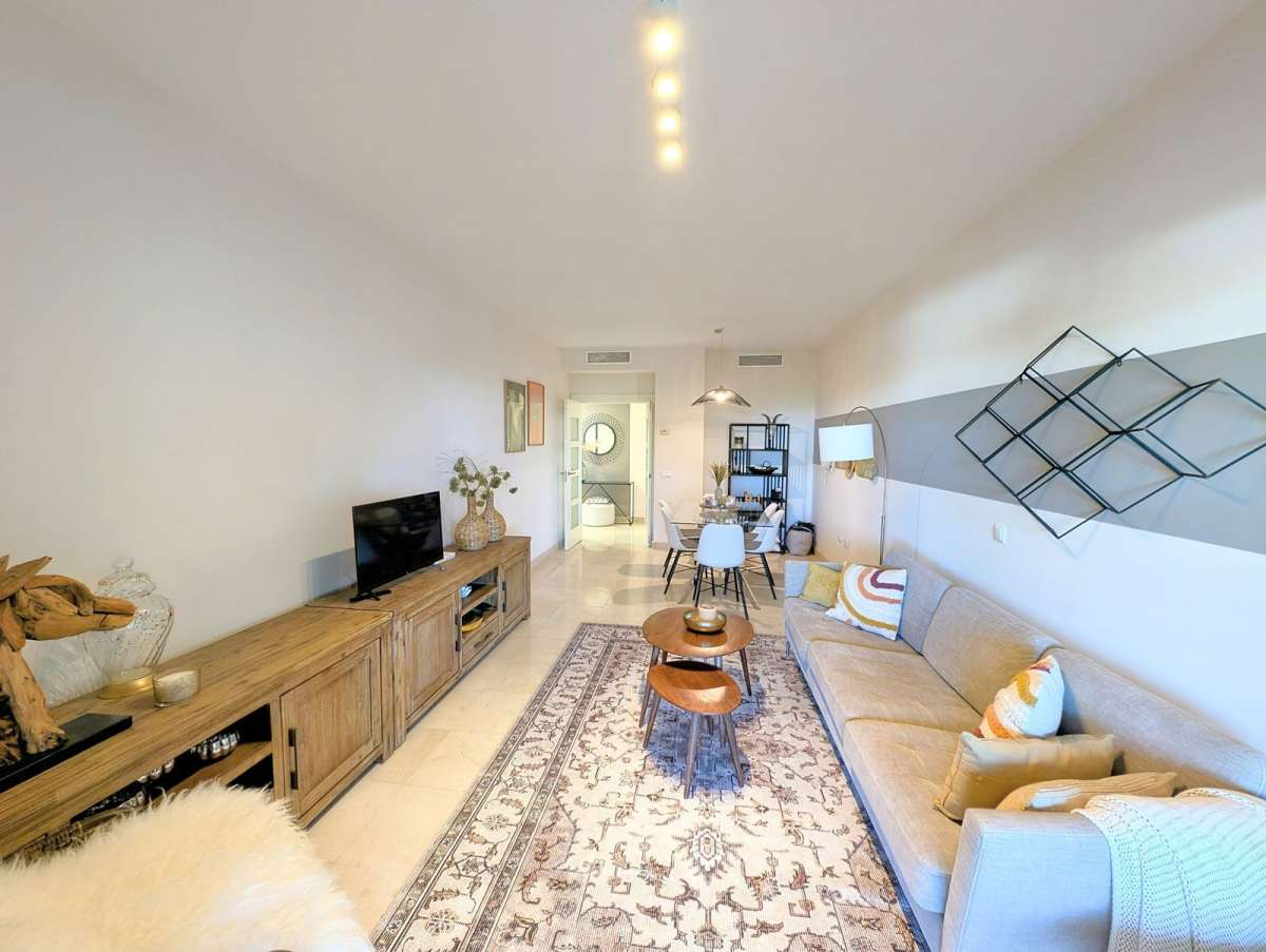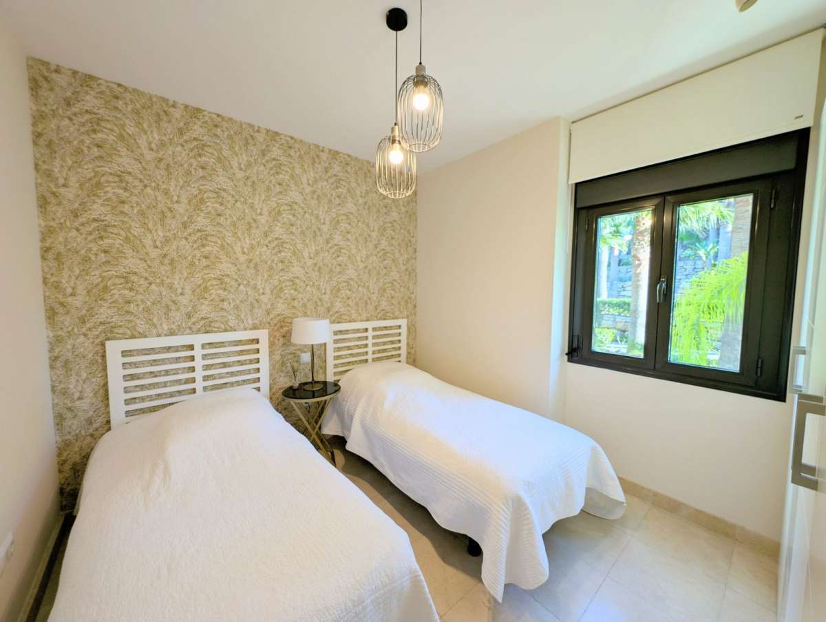 This beautifully furnished 2-bedroom apartment is located in the prestigious complex of Hoyo 19, within the exclusive Los Flamingos Golf Resort in Benahavis. The apartment offers a perfect blend of comfort and luxury, featuring hot and cold air conditioning, elegant marble floors, and a spacious master bedroom with an en-suite bathroom and fitted wardrobes. The fully fitted kitchen is ideal for preparing meals, and the property includes secure underground parking with direct lift access, providing convenience and privacy.