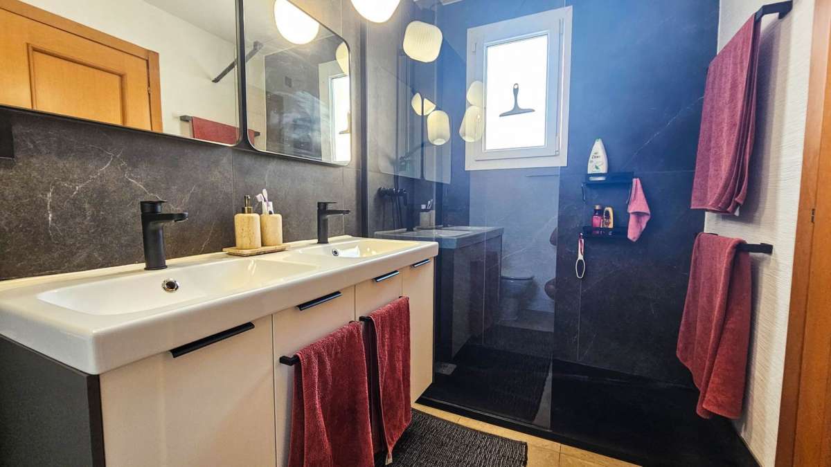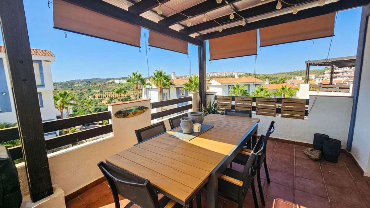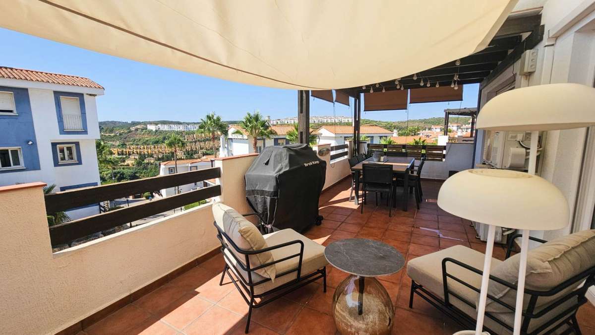 Tastefully renovated open plan kitchen with quality appliances, three good sized bedrooms, two renovated bathrooms, a generous terrace covering 28 sqm which offers mountain views and a private underground parking space right below the apartment. If this isn't enough, how about four communal swimming pools, low community fees and yes you can walk to the beach from here (1 km). A peaceful and quiet urbanisation situated on a safe distance from the Duquesa Marina, Torreguadiaro and Sotogrande, but all three are within reach, merely minutes away by car. Furniture is optional but can be included so you can just move in without any hassle. First come, first served!
