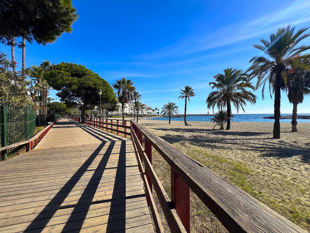 Discover your new home in the heart of Puerto Banús! This spectacular beachfront apartment on Playa del Duque offers an unparalleled lifestyle. With 198 m² built and 160 m² of living space, it features three spacious double bedrooms, each with its own en-suite bathroom and built-in wardrobes, ideal for enjoying comfort and privacy. The bright living-dining room opens onto a charming terrace, perfect for enjoying the Mediterranean climate. The fully equipped kitchen, with high-end appliances, is a dream for food lovers. In addition, the laundry room and storage room add functionality to this wonderful home. The complex boasts large tropical gardens and three swimming pools, one of which is specially designed for children. With 24-hour concierge and security services, as well as video surveillance, your peace of mind is guaranteed. Two exclusive restaurants for residents and direct beach access make this a true paradise. And don't forget that the parking space and storage room are included in the price, which adds even more value to this offer. With all amenities within easy reach and El Corte Inglés just 2 minutes away, this apartment is the perfect choice for those seeking quality of life in a prime location. Don't miss this unique opportunity!