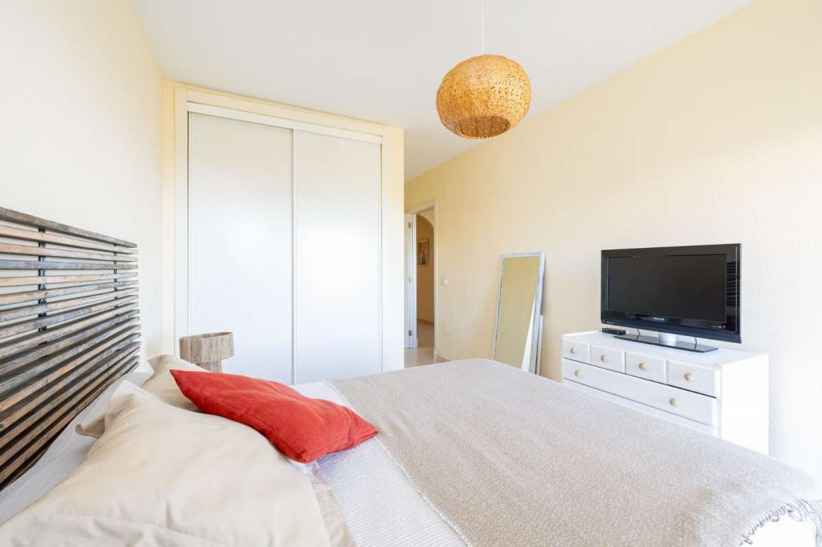 Two-bedroom apartment with a terrace and sea views in Riviera del Sol. This southwest-facing third-floor apartment houses a living area of ​​106 m² and a usable area of ​​89 m². This property stands out for its spacious layout, which includes two bedrooms, two bathrooms (one en suite), and a fully equipped kitchen that connects to a convenient laundry room, maximizing the home's practicality. Ideal for those seeking comfort and style, the property features four built-in wardrobes and a 15 m² terrace with stunning sea views. Its southwest orientation ensures light and a cozy atmosphere, perfect for enjoying the sunsets. It is delivered fully furnished and ready to move into. The home is located in a gated community offering a peaceful and secure environment, with two communal pools and spacious gardens, providing an ideal space for relaxation and leisure. Furthermore, its location is unbeatable, just 2 minutes from the AP-7 motorway, ensuring easy access to the main cities of the Costa del Sol, such as Marbella and Fuengirola, both just 15 minutes away. The proximity to schools, essential services, and a wide variety of leisure and entertainment options, such as beaches and golf courses, make this property an exceptional choice for enjoying a comfortable and affordable life.