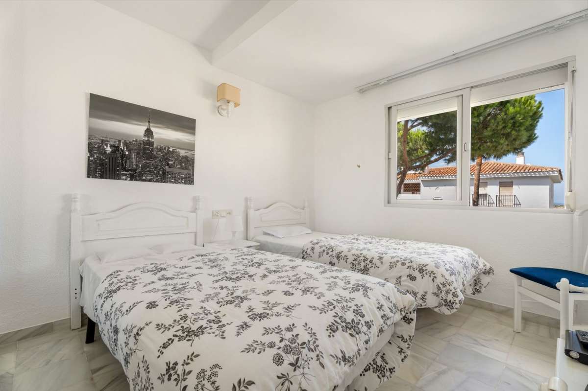 The master bedroom complete with ample wardrobe space and en-suite bathroom has direct access to the terrace, allowing you to wake up to sea views each morning. The two additional bedrooms are spacious, both featuring built-in wardrobes and windows that fills the rooms with light. A well-appointed second bathroom serves these bedrooms, offering comfort and privacy for family or guests.