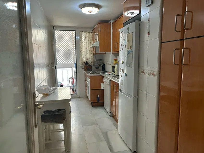 The property has three generously proportioned bedrooms, each equipped with a fitted wardrobe. The property boasts two bathrooms, one of which is en suite to the master bedroom, while the other is available for visitors. The kitchen has been designed to be an independent space and is fully furnished. Adjacent to the kitchen is a service area, which could be used as a laundry room. This property is situated on the third floor, with convenient lift access from the garage. The property also benefits from a terrace, balcony and parking space.
