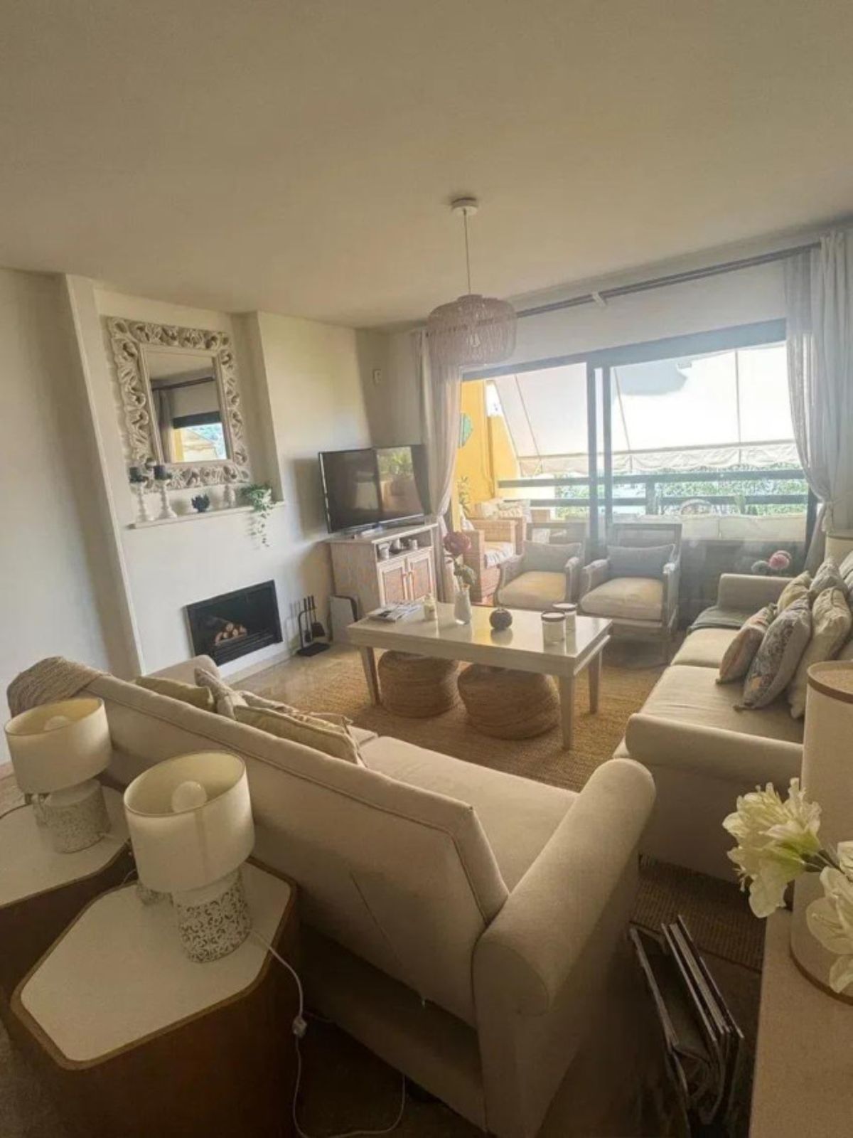 Description Middle Floor Apartment, Selwo, Costa del Sol. 3 Bedrooms, 2 Bathrooms, Built 132 m², Terrace 20 m². Setting : Urbanisation. Orientation : South West. Condition : Excellent. Pool : Communal. Climate Control : Air Conditioning, Hot A/C, Cold A/C. Views : Mountain. Features : Covered Terrace, Lift, Fitted Wardrobes, Private Terrace, WiFi, Utility Room, Ensuite Bathroom, Access for people with reduced mobility, Marble Flooring, Double Glazing, Fiber Optic. Furniture : Part Furnished. Kitchen : Fully Fitted. Garden : Communal. Security : Gated Complex. Parking : Underground, Garage, Covered, Private. Category : Resale. Features Apartment Selwo Resale property Urbanisation Facade: Southwest Mountain views Excellent condition Kitchen: Fully fitted Gated complex Partly furnished Air conditioning Hot AC Cold AC Underground parking Garage Private Communal garden Communal pool Covered terrace Fitted wardrobes Private terrace Utility room En suite bathroom Marble flooring Double glazing Lift / elevator View all