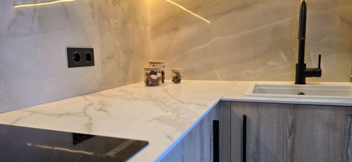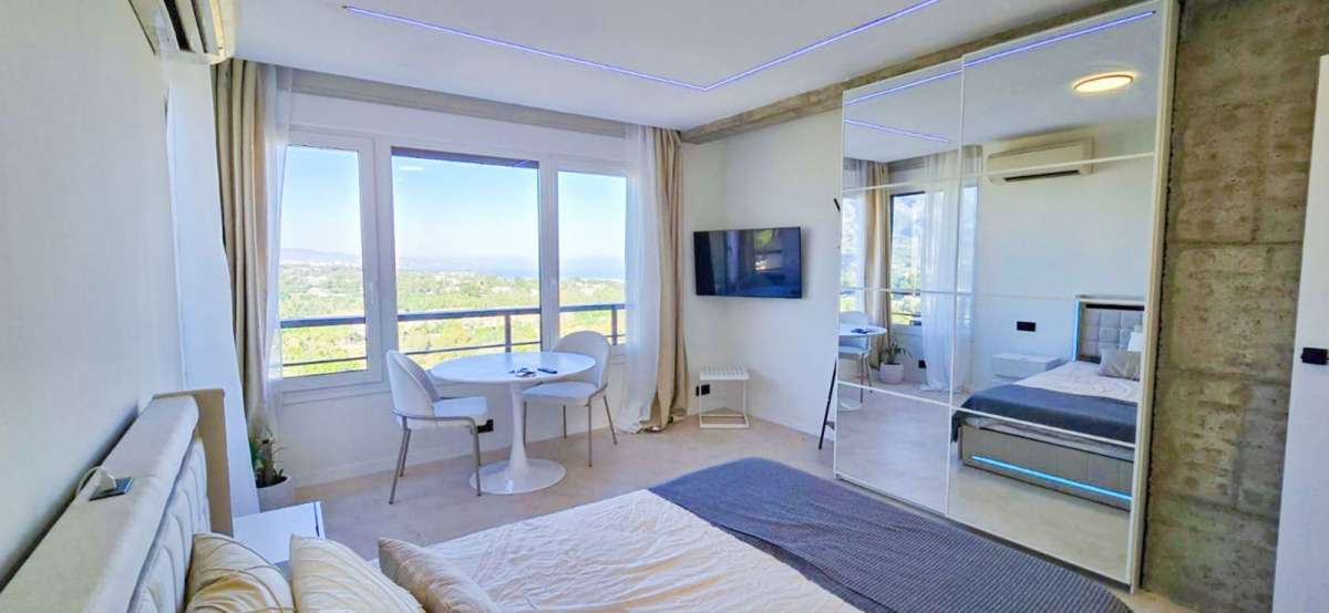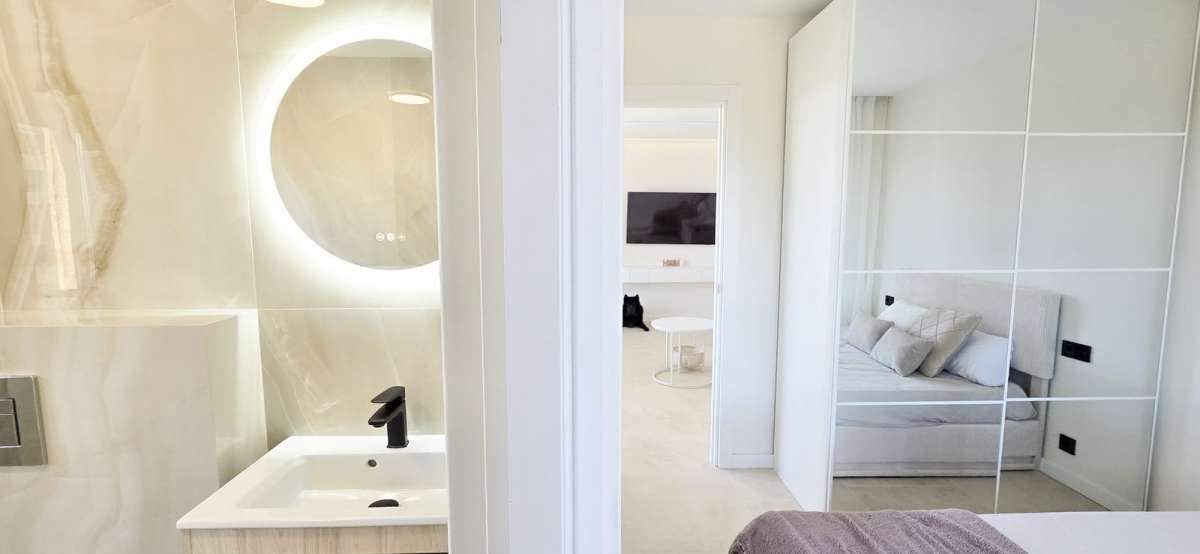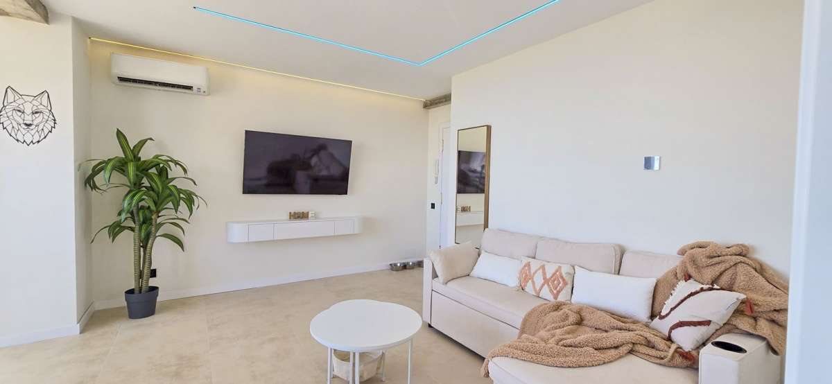 This unique and beautifully partitioned 2-bedroom, 2-bathroom penthouse is cleverly configured as two separate apartments in one—each with its own fully equipped kitchen, living area, and bathroom. The layout offers excellent flexibility: use as two independent units or easily reconnect the interior to create one spacious residence, thanks to the shared entrance and adaptable design.