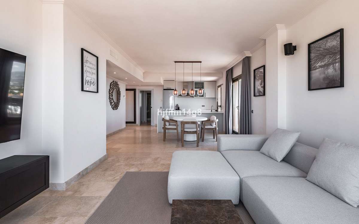 This luxurious single-level penthouse offers stunning panoramic views of the sea and mountains. The property features an entrance hall leading to a spacious living and dining area, which opens onto two terraces: one facing southeast with views of La Concha mountain, the Atalaya Golf Course, and the Mediterranean Sea; the other facing south/southwest, showcasing sweeping vistas of the sea, Gibraltar, and the North African coastline.