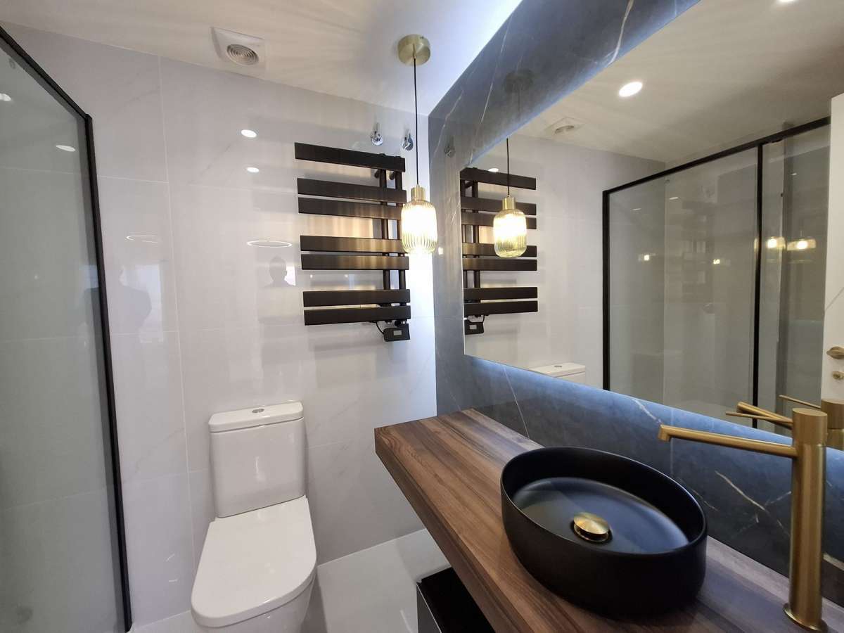 Both bedrooms are exterior: the master bedroom receives afternoon sun, while the guest bedroom enjoys morning light. Each room has built-in wardrobes, and the two bathrooms have been finished with elegant, modern touches and high-quality materials. Every detail has been carefully crafted to offer comfort and style—from double-glazed windows, air conditioning, to stylish finishes throughout the property.