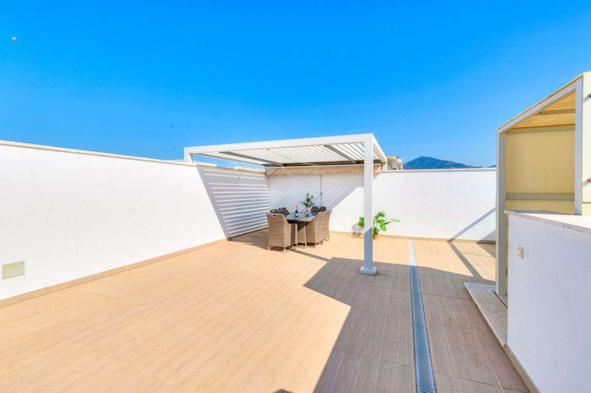 Located in the well-established and sought-after residential area of San Pedro Alcántara, Marbella, this stylish duplex penthouse is just 700 metres from the beach, within a well-maintained gated community with a communal swimming pool and easy access to all essential amenities: supermarkets, restaurants, green areas, pharmacies, and public transport. The property is in good general condition, fully habitable and ready to move into, offering a smart layout and generous outdoor spaces that make the most of the Mediterranean lifestyle all year round. Main features: 3 bedrooms with built-in wardrobes 2 full bathrooms (one en suite) Bright living-dining area with direct access to a 20 m² main terrace Contemporary design with a kitchen visually connected to the dining area through a practical sliding glass enclosure Independent laundry area Outdoor areas designed for enjoyment: Staircase from the main terrace leading to a large 65.75 m² private rooftop solarium Pergola on the upper level, ideal for creating a chill-out zone, outdoor dining area or sunbathing space Communal pool within a quiet and secure development Private underground parking space included in the price Installations and equipment: Central air conditioning with heat pump Electric water heater Well-maintained interior and exterior finishes Low-density community with excellent upkeep An ideal home whether as a primary residence, holiday retreat, or investment property with strong rental potential, in one of the most comfortable and well-connected areas of Marbella. With easy access to the A-7 motorway and just minutes from San Pedro town centre, the beachfront promenade, and the renowned Puerto Banús. The Abbreviated Information Document is at your disposal. Costs: Taxes (ITP or VAT + AJD) + notary and land registry fees. The price does not include VAT.