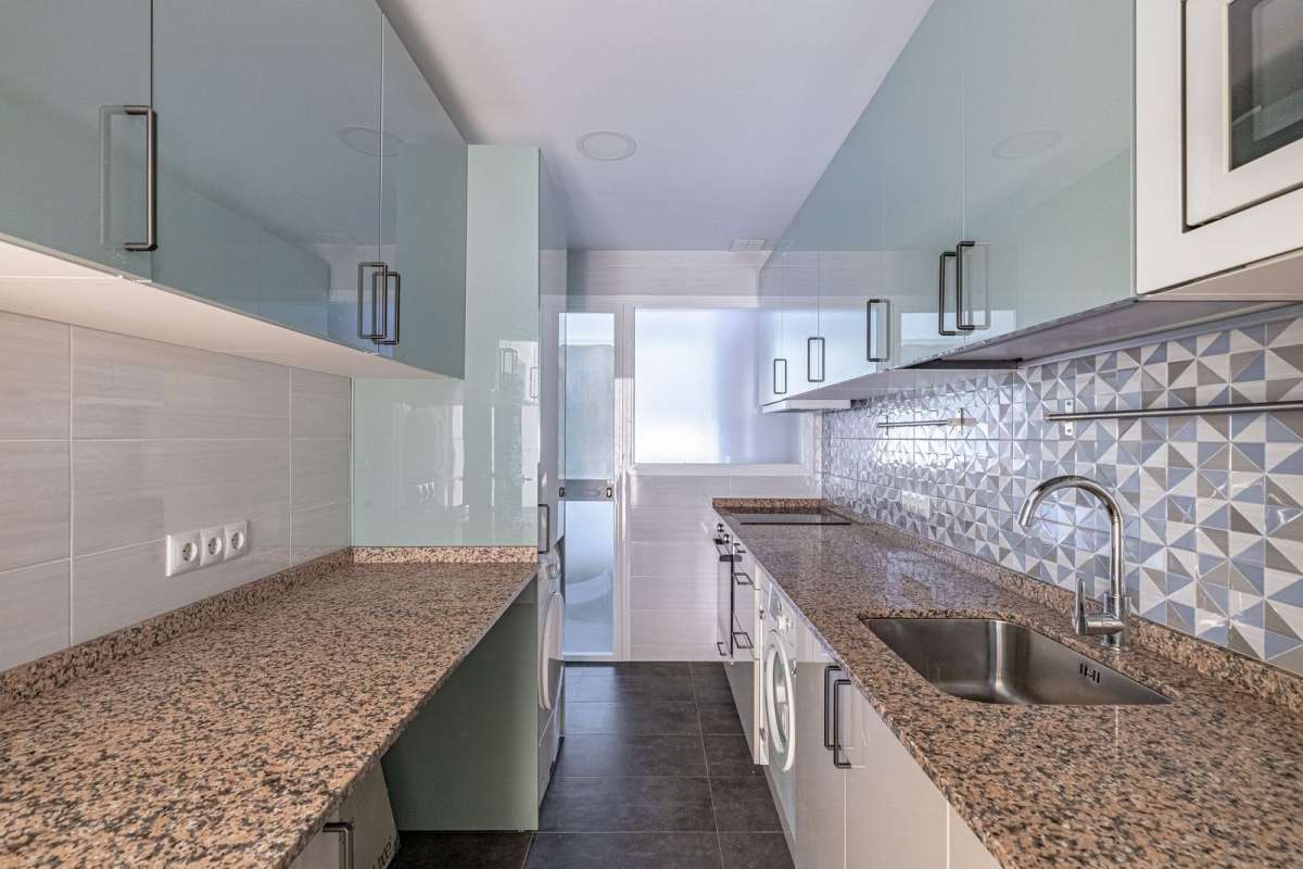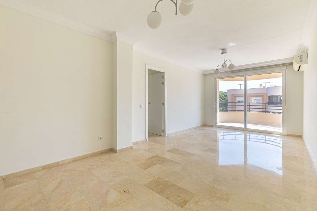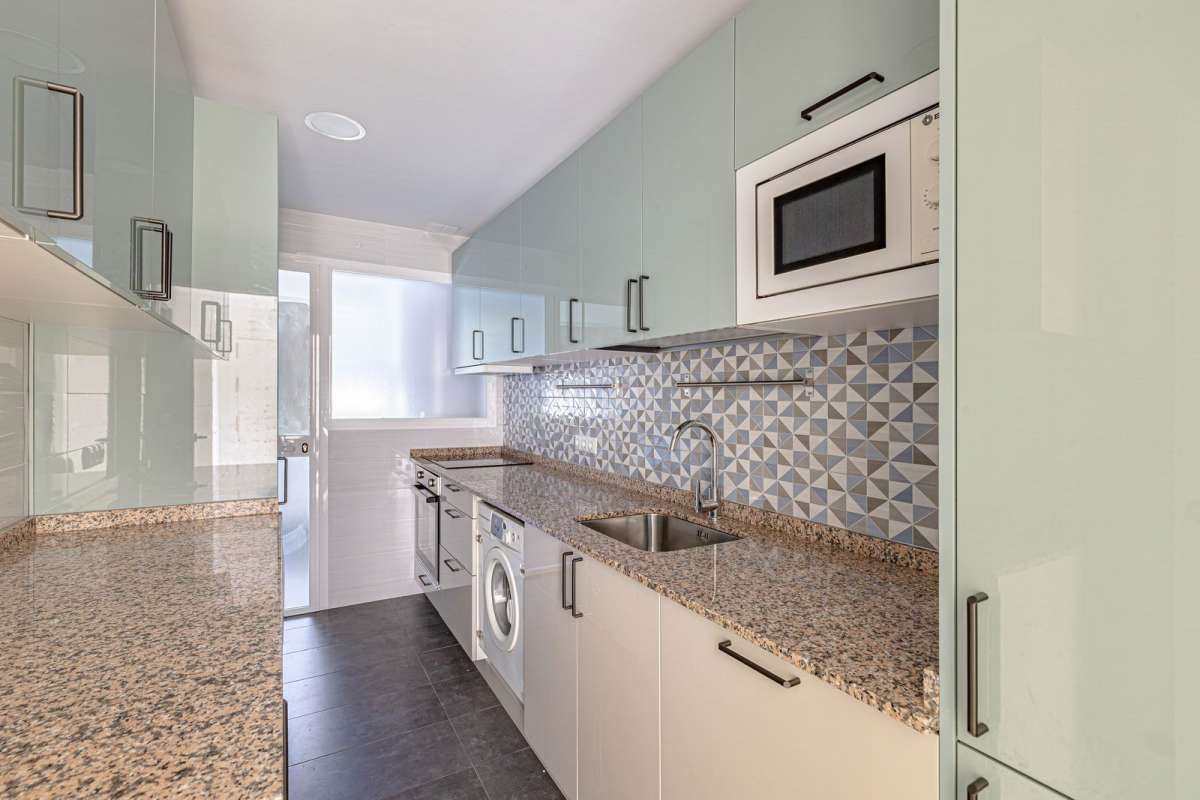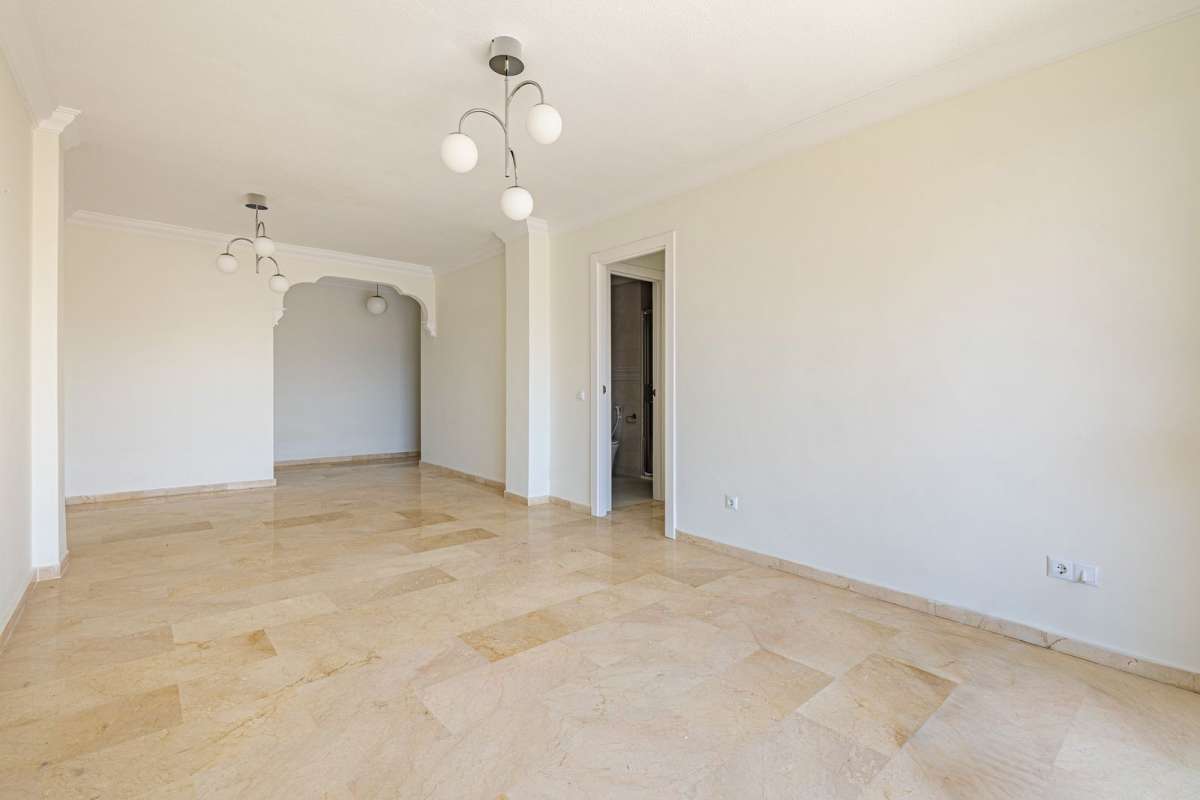 Impeccable top floor apartment in the heart of Marbella, just a 5-minute walk from the beach and the promenade, and next to supermarkets and shops. The property was renovated a few years ago and features: a living/dining room with access to the terrace offering beautiful sea views, a master bedroom with en-suite bathroom, two further bedrooms each with their own bathroom, a fully equipped kitchen, and a laundry room. The complex has a swimming pool and garden, and a secure communal car park.